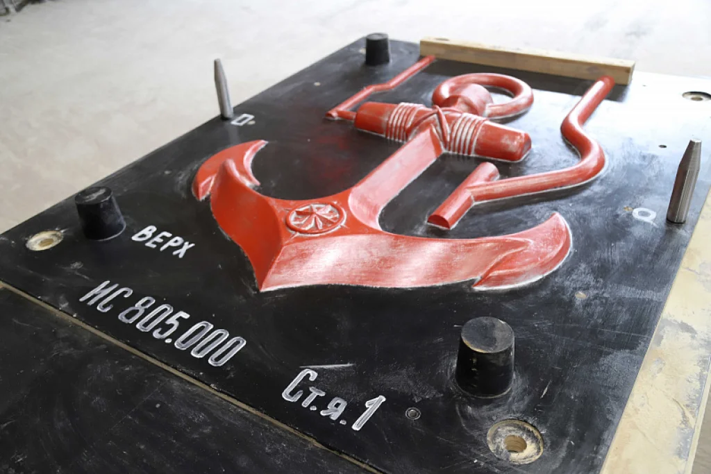 Металлурги, занимающиеся изготовлением якорей и штурвала, рассказали, что после согласования будущей композиции с администрацией города рабочие предприятия приступили к разработке чертежей, затем изготовили формы для литья, в которые сегодня залили металл. Затем пройдет выбивка форм и отделка отливок вплоть до покраски атмосферостойкой краской, чтобы продлить срок службы.