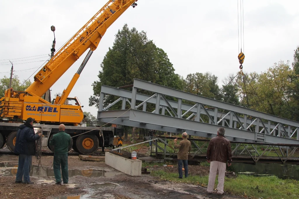 Так вместо старого пешеходного моста, который стал непригодным, появился новый. В ближайшее время специалисты начнут укладку на нем настила из брусьев, монтажу поручней.