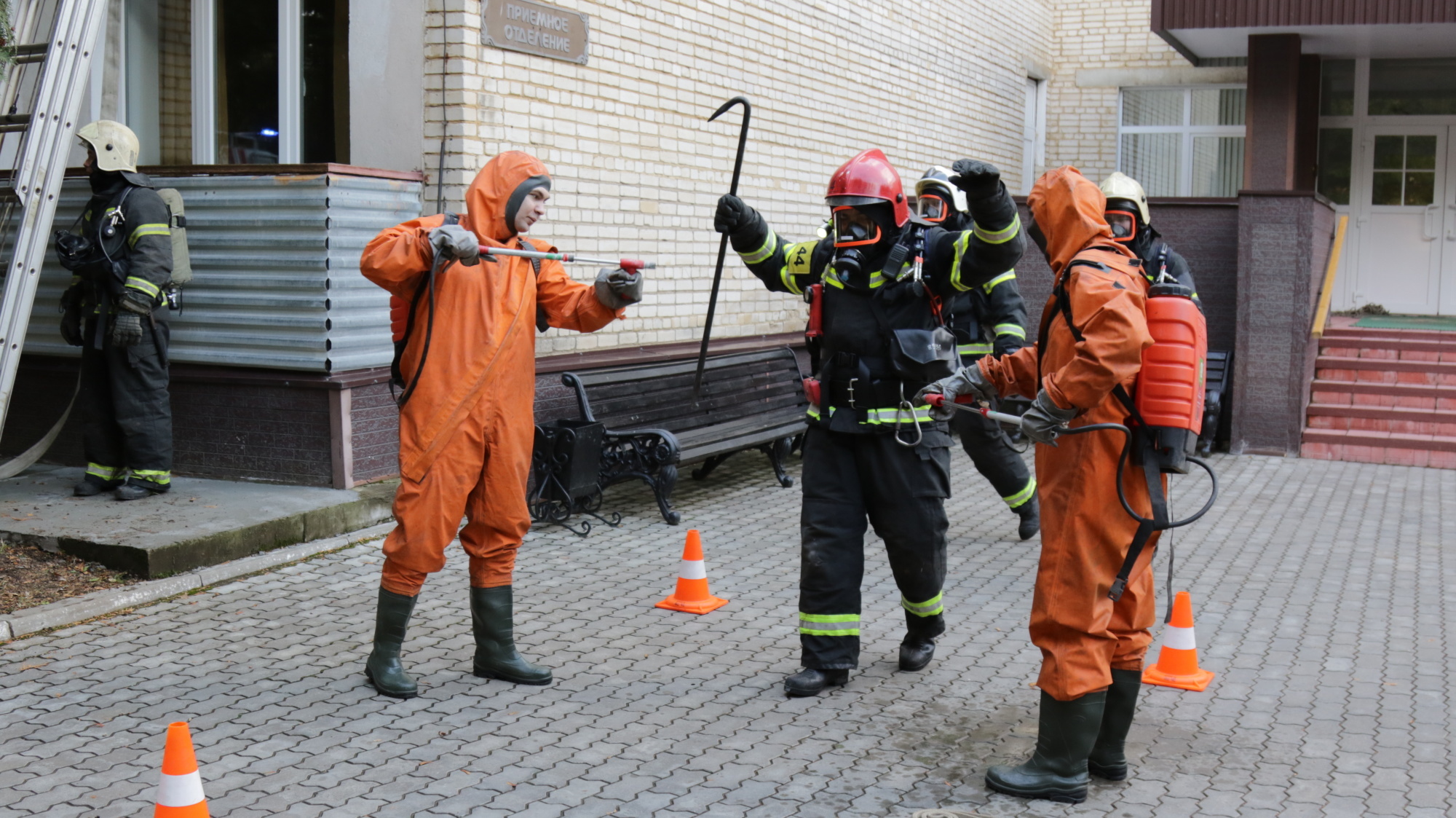 По легенде учений, пожар начался из-за короткого замыкания на территории «красной зоны» в здании главного корпуса санатория, и помимо огня здесь возникли проблемы с электроснабжением и водоснабжением. 32 спасателя и 10 единиц техники, включая автолестницу, пожарно-насосная станция и рукавный автомобиль приняли участие в "тушении". Спасатели оперативно развернули мобильную электростанцию и использовали ближайший естественный водоем для организации тушения пожара.