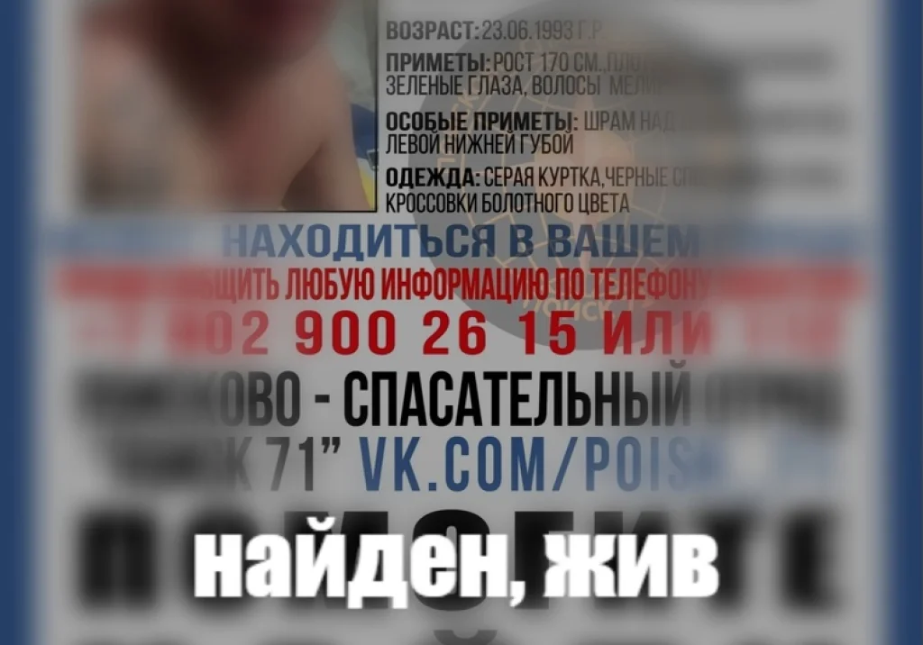 О том, что молодой человек нашелся, сообщили поисковики в своей группе.