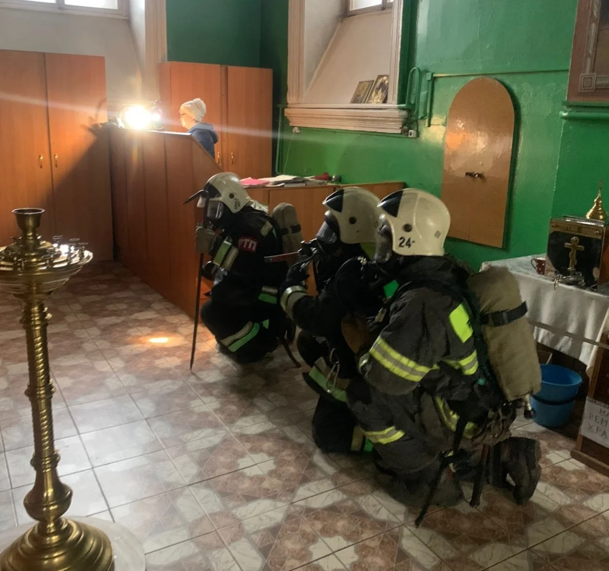 После активной фазы учений с сотрудниками церкви провели методическое занятие, в ходе которого рассматривались вопросы использования и применения первичных средств пожаротушения, доведены требования обеспечения пожарной безопасности на объектах религиозного назначения.