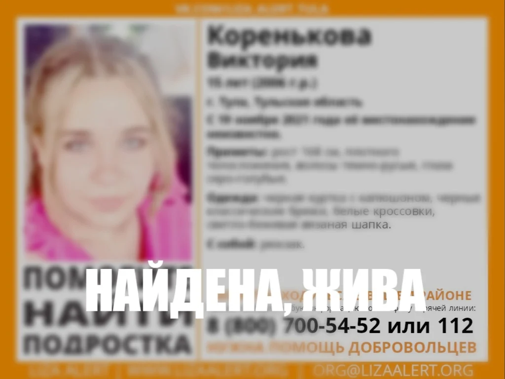 В Туле нашли живой пропавшую 19 ноября школьницу