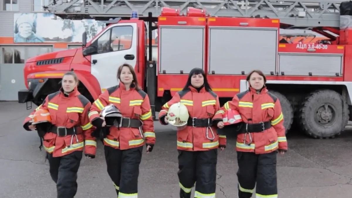 Сотрудницы тульского МЧС в рамках флешмоба выполнили комплекс упражнений в полной амуниции пожарного