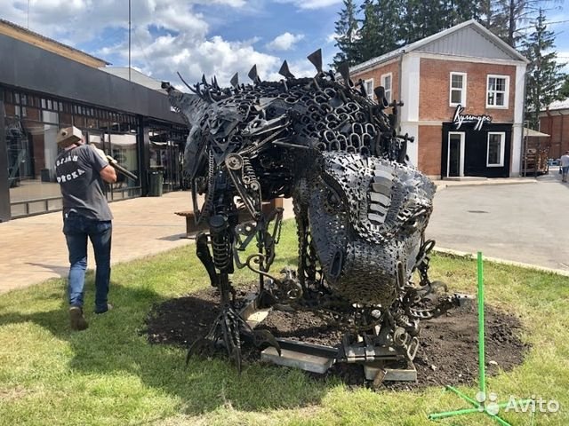 В Туле автор выставил на продажу скульптуру «Динозавр пожирающий змея», сделанную из металла — автозапчасти, диски, шестерни, цепи, валы, элементы тракторной и тепловозной техники. В объявлении уточняется, что высота динозавра в холке более двух метров, а вес составляет одну тонну. Скульптура окрашена в чёрный цвет с нанесением патины. Автор оценил работу в 450 тысяч рублей.