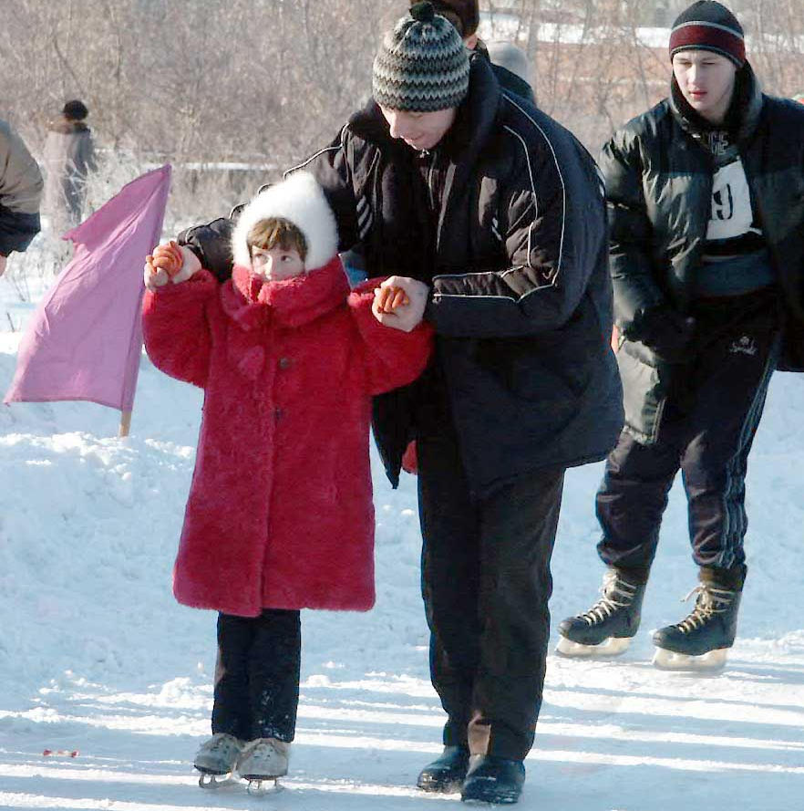 Стоимость проката коньков — 150 рублей взрослые и 100 рублей детские.
