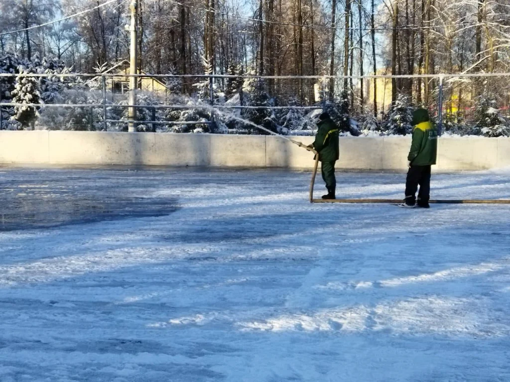 Каток в пос. Ленинский, ул. Ленина, 9; хоккейная коробка в пос. Ленинский, ул. Гагарина, 9; хоккейная коробка в с. Хрущево, ул. Прудная; хоккейная коробка в пос. Рождественский, ул. Лесная; каток в пос. Обидимо, ул. Комсомольская площадь, 2-а.