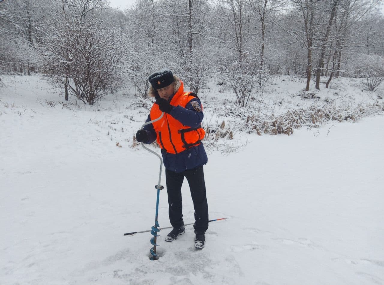 Тульские спасатели измерили толщину льда на прудах в парке им. Белоусова