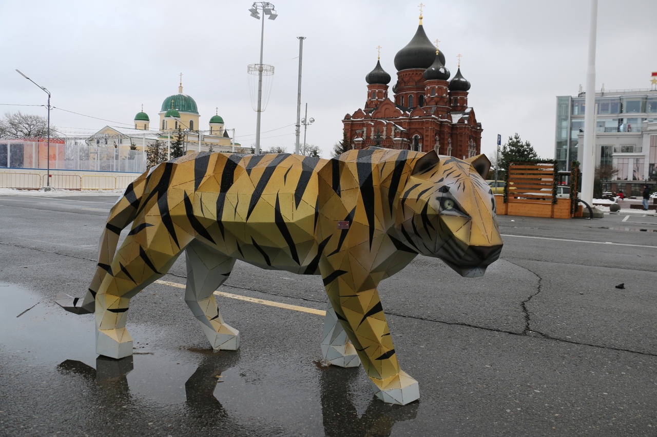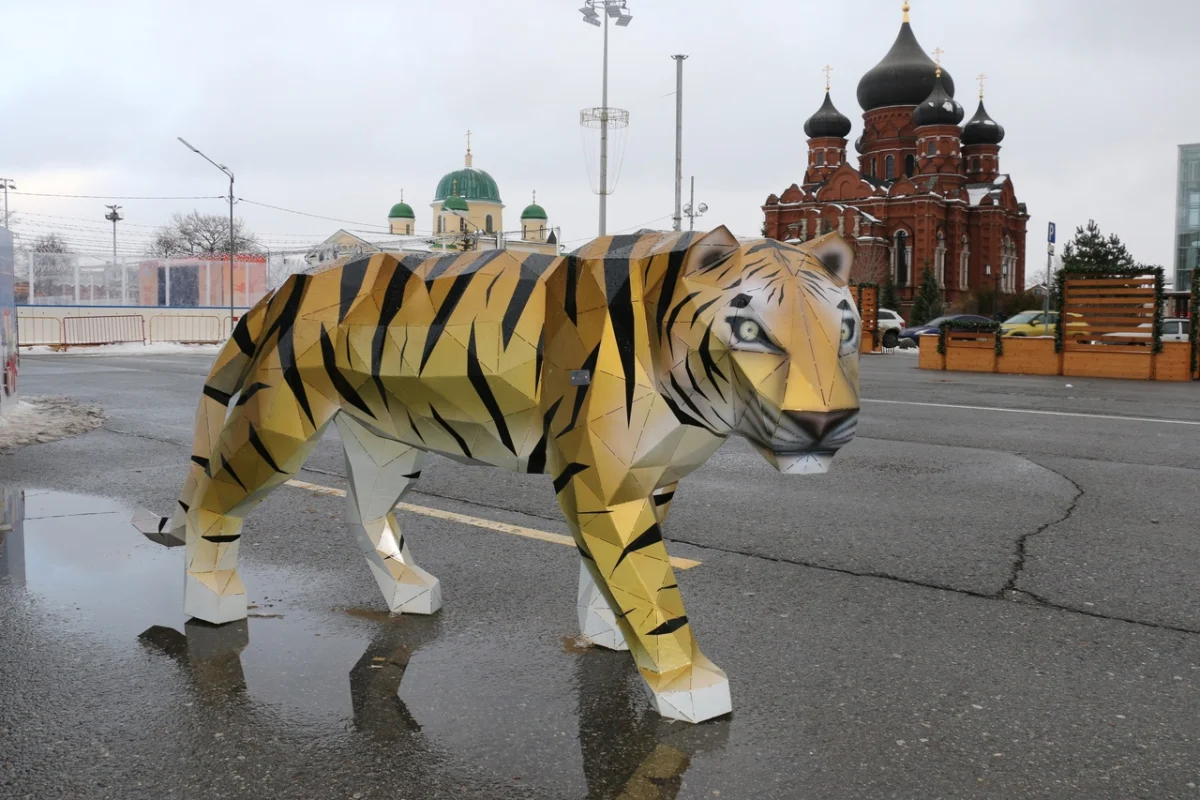 В Туле на площади Ленина установили символ наступающего года - полигонального тигра