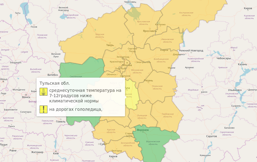 В Тульской области продлили метеопредупреждение из-за морозов до 02:00 пополуночи 24 декабря. Сотрудники МЧС по Тульской области напоминают, что из-за погодных условий и гололедицы на дорогах региона сложилась трудная обстановка, а среднесуточная температура на 7-12 градусов ниже климатической нормы.