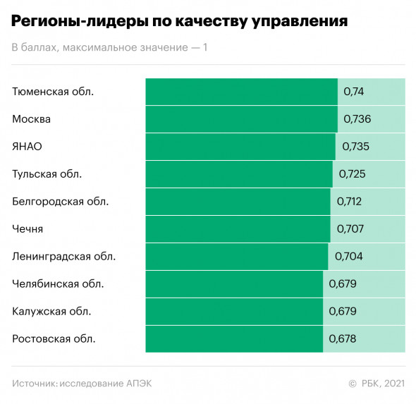 Так, для оценки политико-управленческого блока анализировались уровень поддержки главы региона и результат «Единой России» на региональных выборах, в социальном блоке учитывались обеспеченность субъекта врачами, расходы бюджета на образование и другие факторы. В финансово-экономическом блоке оценивали уровень долговой нагрузки на региональный бюджет и качество бюджетного управления.