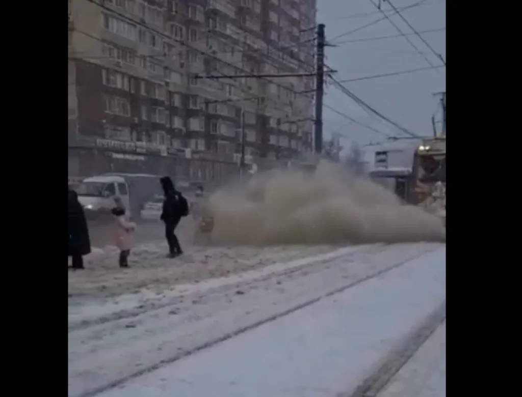 Прокуратура Тулы начала проверку по инциденту со снегочисткой, окатившей грязным снегом прохожих во время работы на трамвайных путях на проспекте Ленина, рядом с остановкой «Зеленстрой».