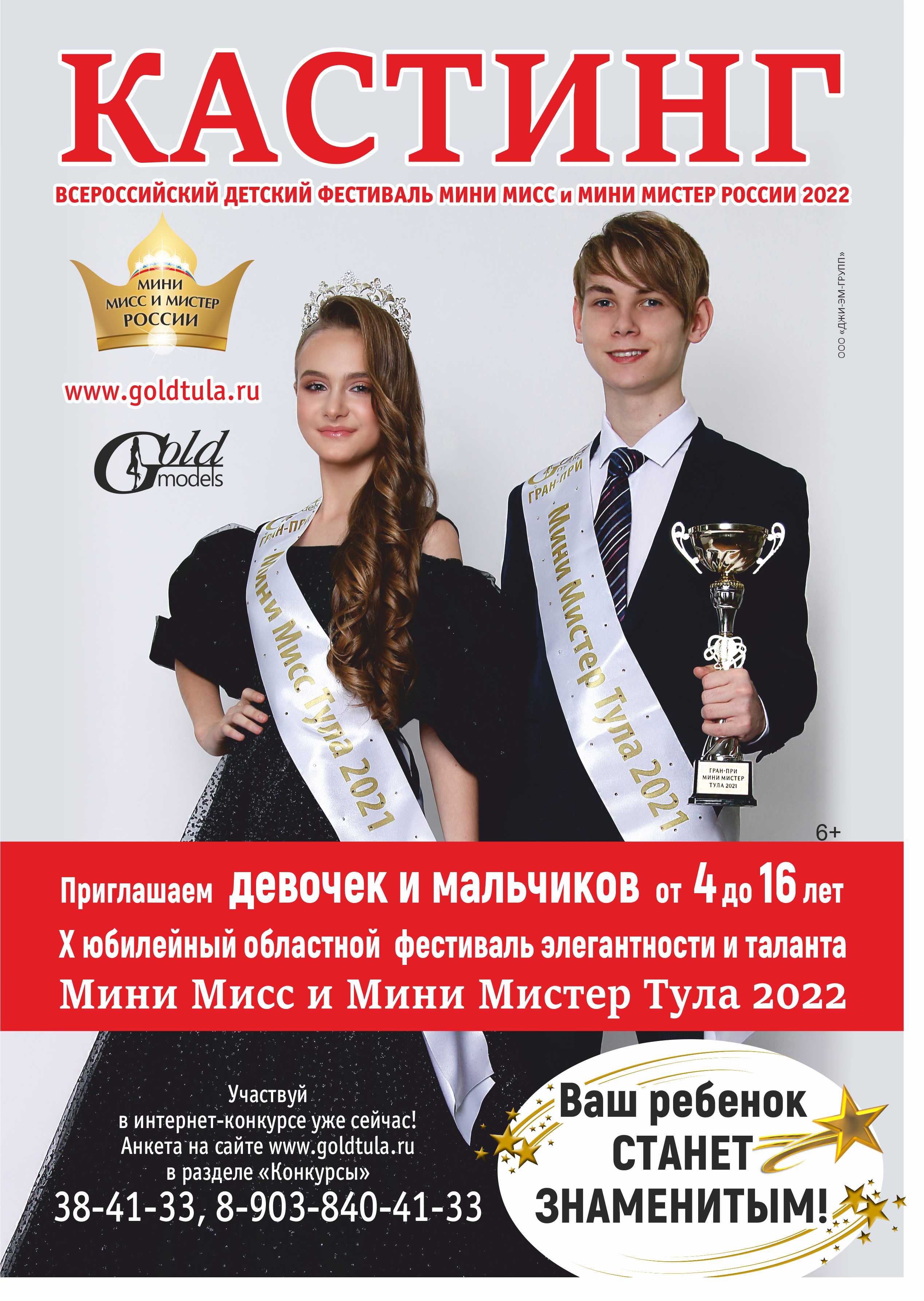 Модельное агентство «Gold Models» объявляет о приеме заявок на участие в x юбилейном областном детском фестивале элегантности и таланта «Мини Мисс и Мини Мистер Тула»-2022
