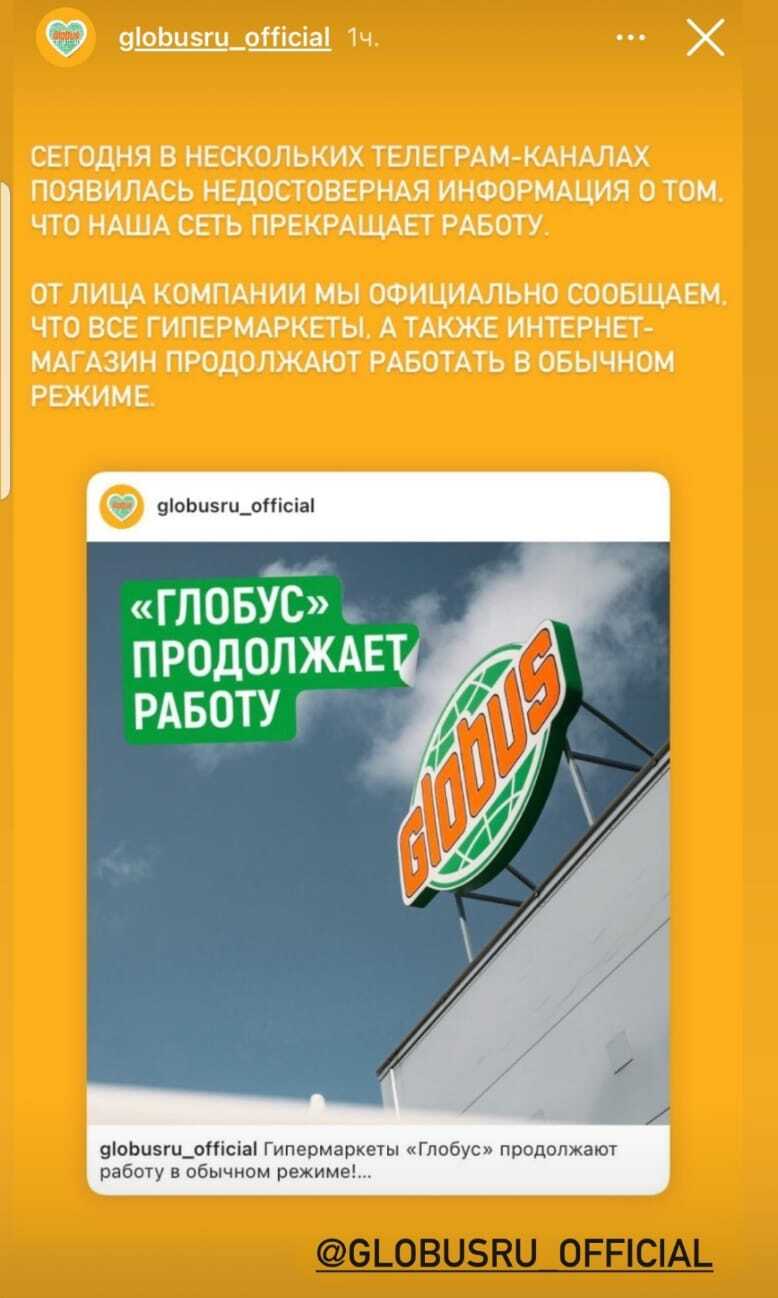 После появления информации в ряде источников о том, что Globus покидает Россию, появилось официальное опровержение от компании. Также слухи о своем уходе опровергла французская сеть «Ашан», об этом сообщает «Комсомольская правда».