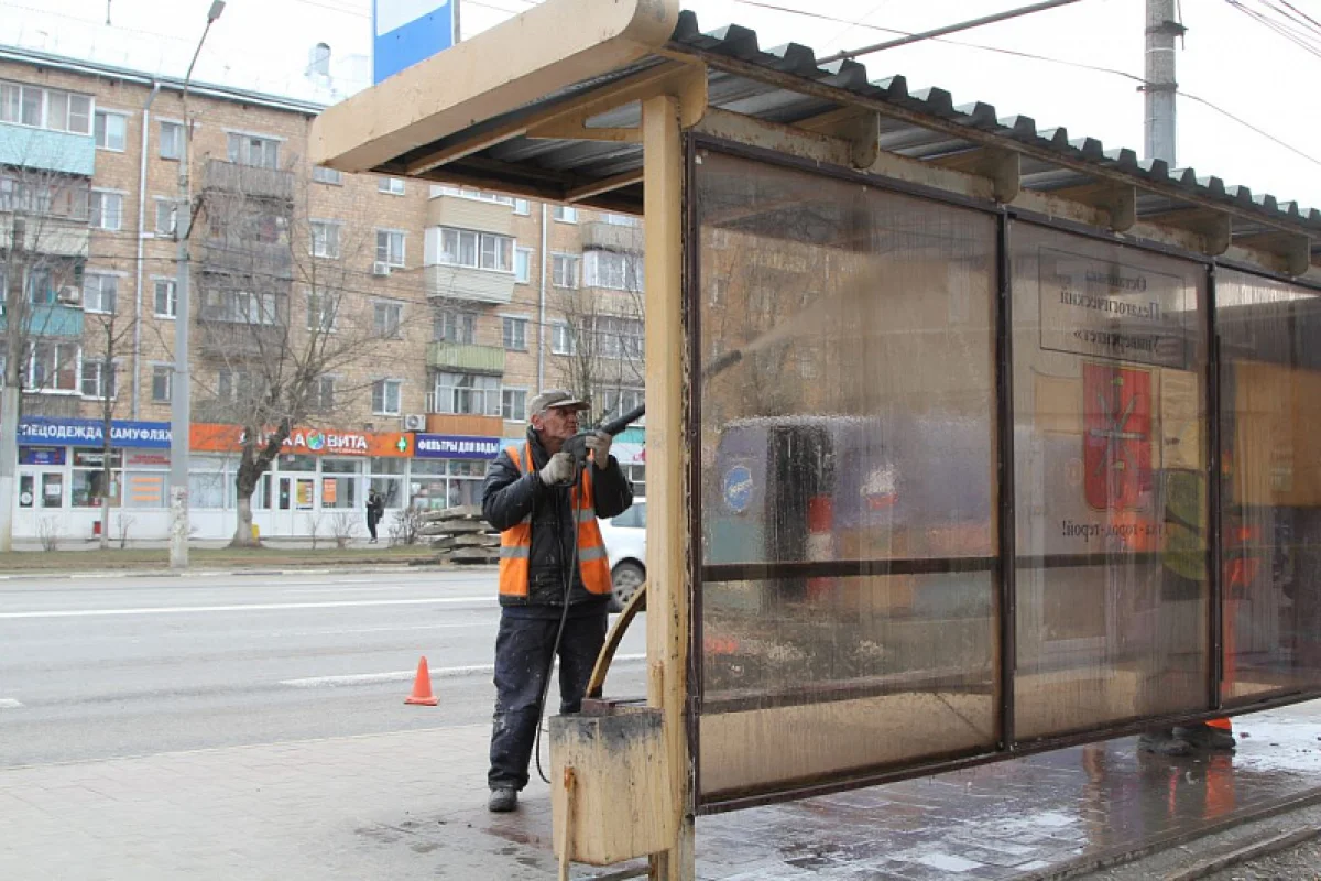 В Туле начали отмывать после зимы и приводить в порядок остановочные павильоны