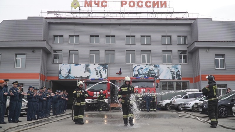 Уходящего на пенсию сослуживца по традиции на прощание на фасаде пожарно-спасательной части спасателя «окатили» водой из пожарных рукавов: эта традиция выражает уважение и восхищение смелостью и отвагой сотрудника, проявленными за годы службы при выполнении спасательных операций.