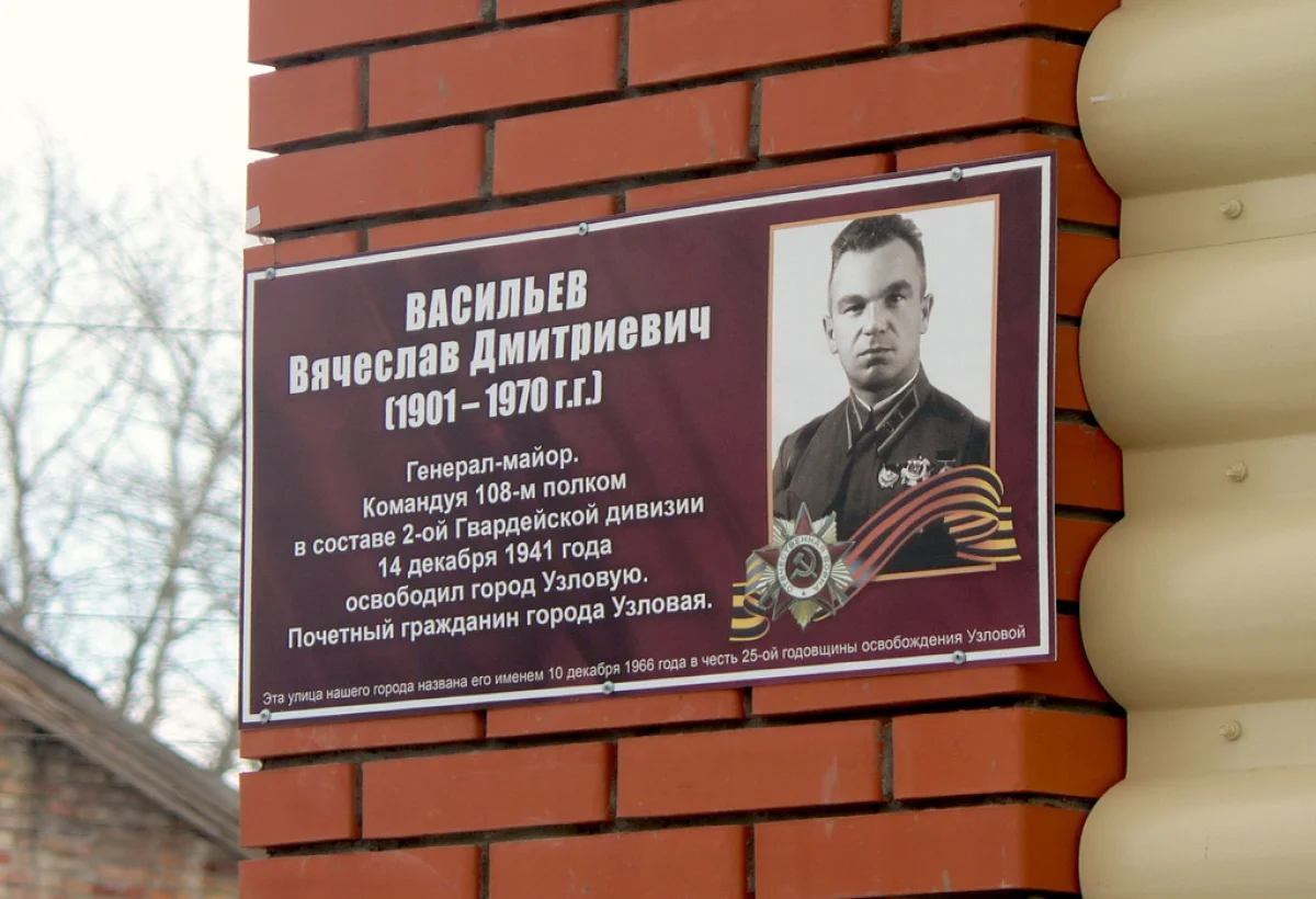 Вячеслав Васильев командовал полком в составе 2-го гвардейского корпуса и в 1941 году сумел задержать наступление немцев на Москву. Позднее, 14 декабря 1941 года, он освободил Узловую. Васильев был награжден орденом Красного Знамени.