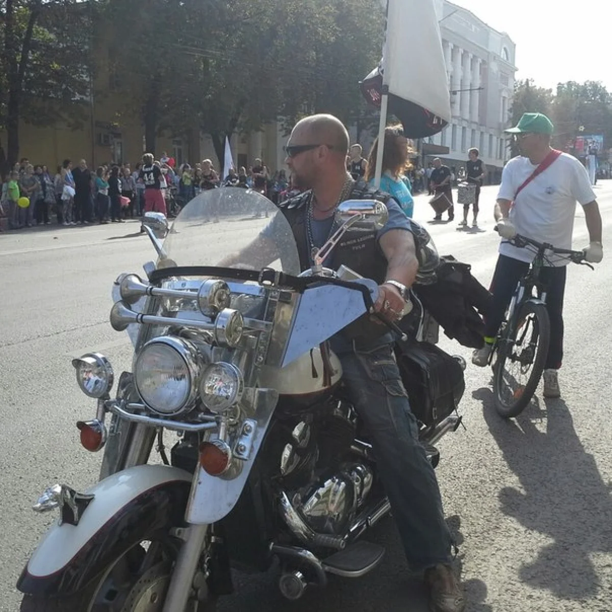 К площади Ленина по проспекту движется карнавальное шествие. Впереди – известные барабанщики «44 drums». Шествие сопровождают байкеры.