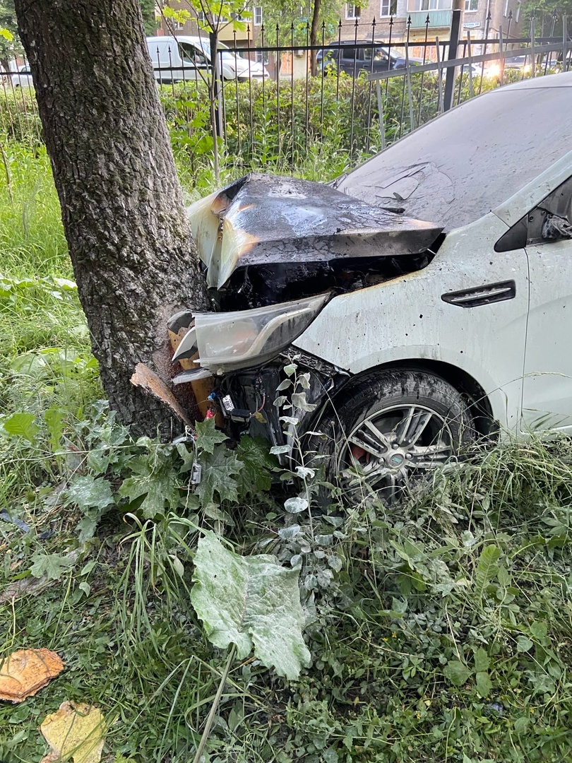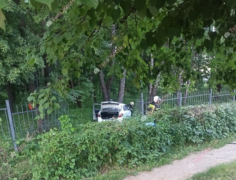 В Туле «Киа Рио» протаранил забор Пролетарского парка и врезался в дерево: водителю стало плохо за рулем