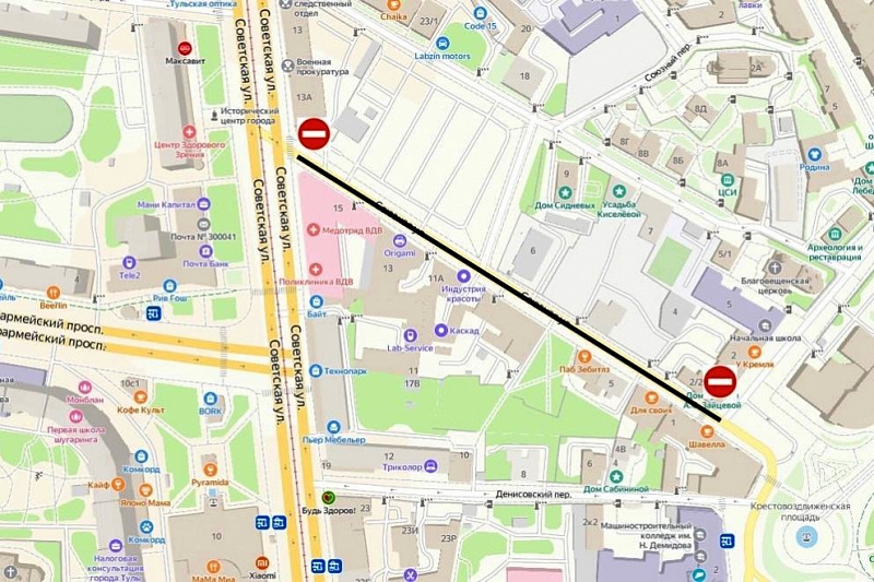 Проезд запрещен на участке от Менделеевской до Благовещенского переулка. Отмечается, что ремонт ливневки будет проведен по всей улице.