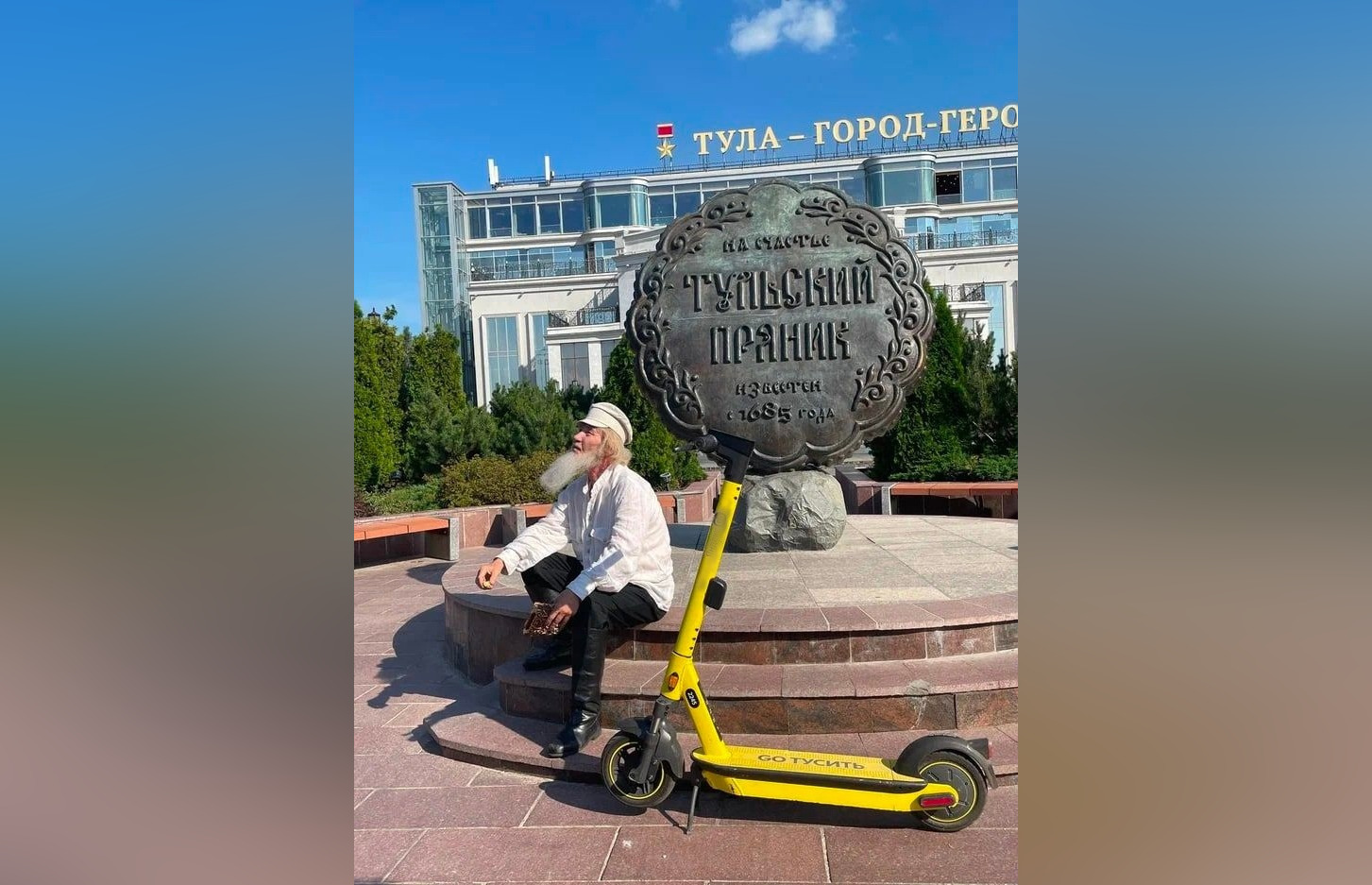 Видео с Львом Николаевичем опубликовали в популярной социальной сети. Он доехал до площади Ленина и присел отдохнуть к тульскому прянику.