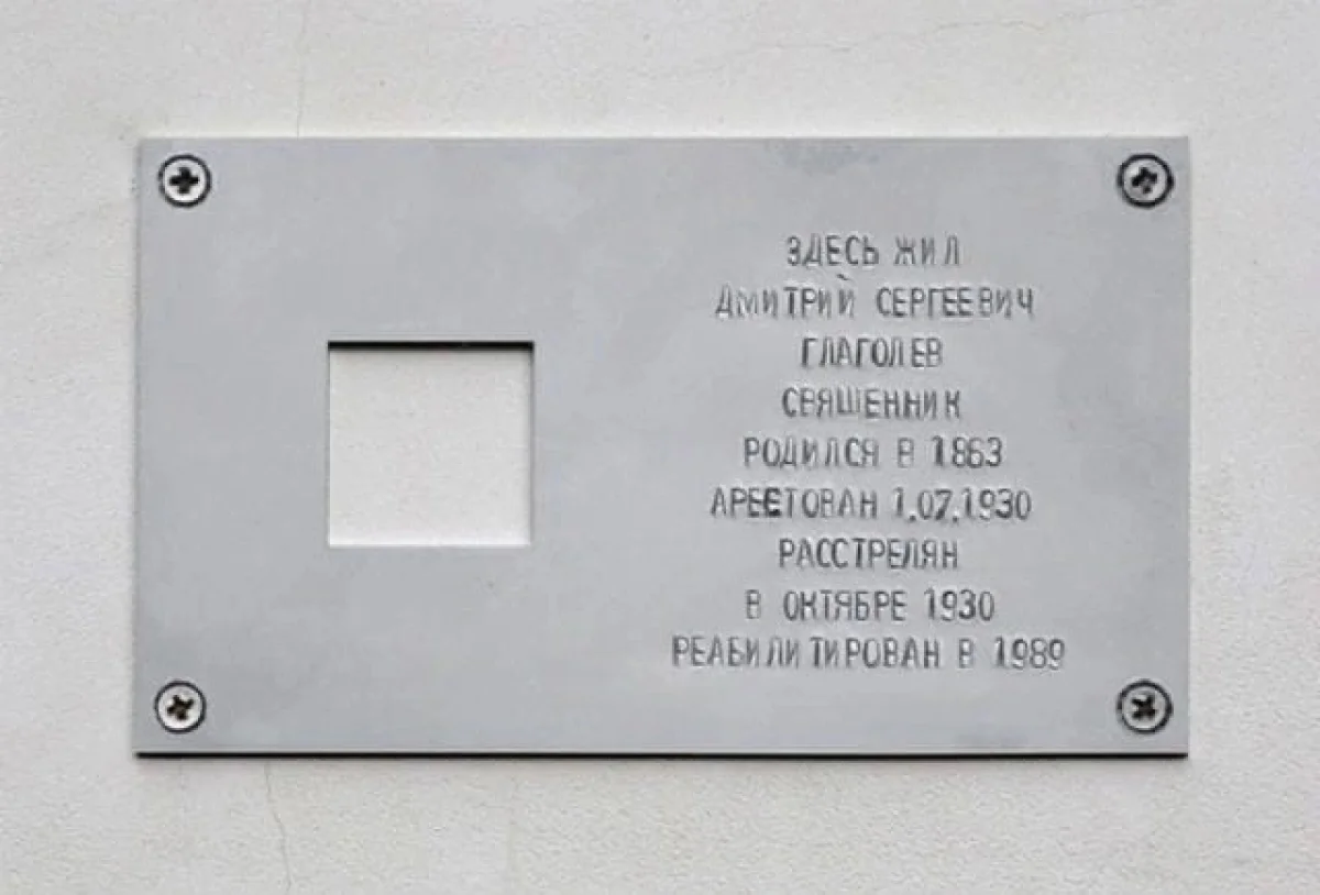 В память о человеке на стене дома, в котором он жил, устанавливается маленькая памятная табличка. В Туле до недавнего времени таких было две — на улице Пушкинской, 12, где жил репрессированный священник Дмитрий Глаголев, а также на проспекте Ленина, 122, где жил преподаватель Тульского механического института Александр Чернов.