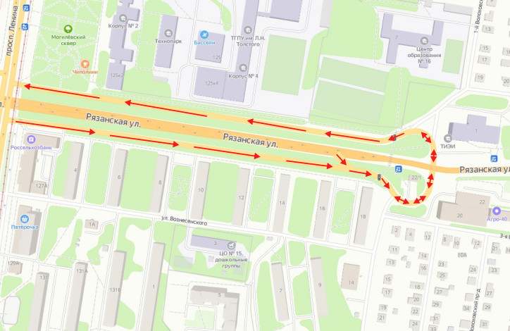 Так, будет введено одностороннее движение на съезде с проспекта Ленина на ул. Рязанскую в районе домов №№ 4, 6, 8, 10, 12, 14, 16, 18 и с ул. Рязанской в сторону проспекта Ленина в районе дома № 125.