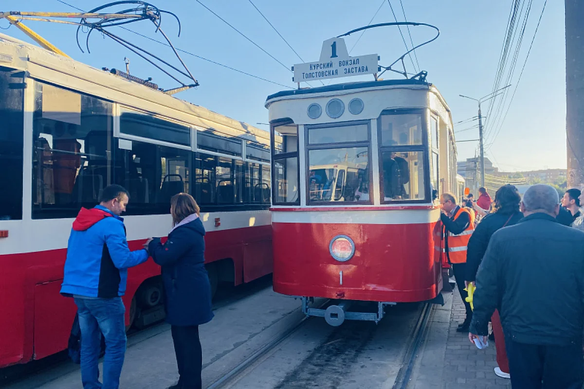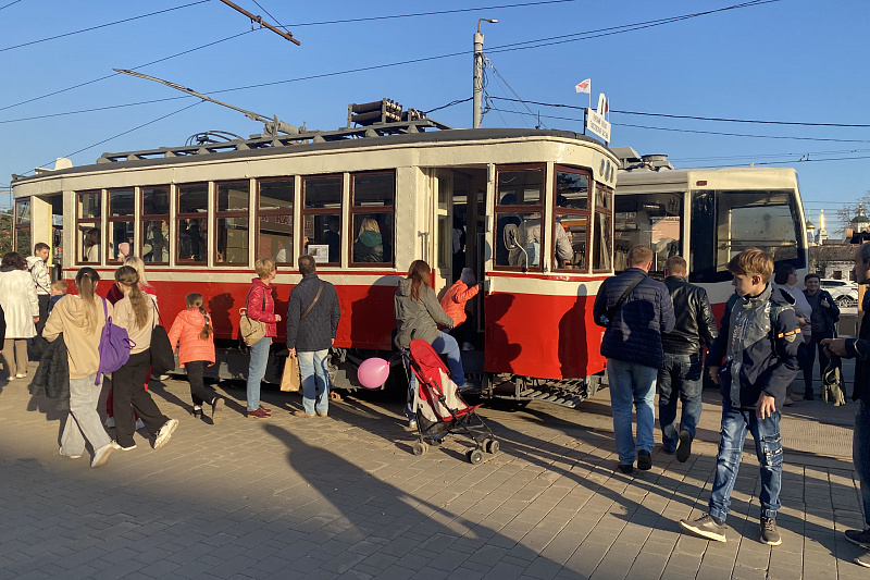 В День города в Туле напротив здания Городского концертного зала на улице Советской прошла выставка трамваев «95 лет на службе городу».