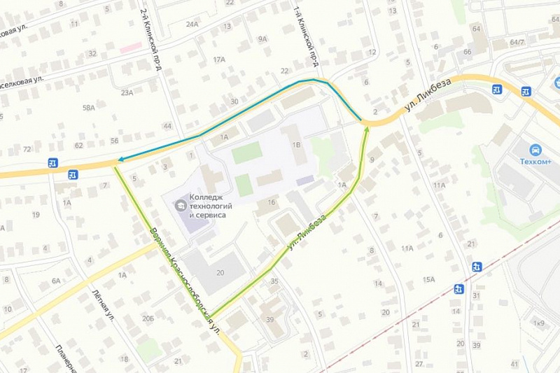Движение в сторону центра города будет доступно по улице Верхней Краснослободской на участке от улицы Чмутова до улицы Ликбеза и по улице Ликбеза на участке от Верхней Краснослободской до улицы Чмутова.