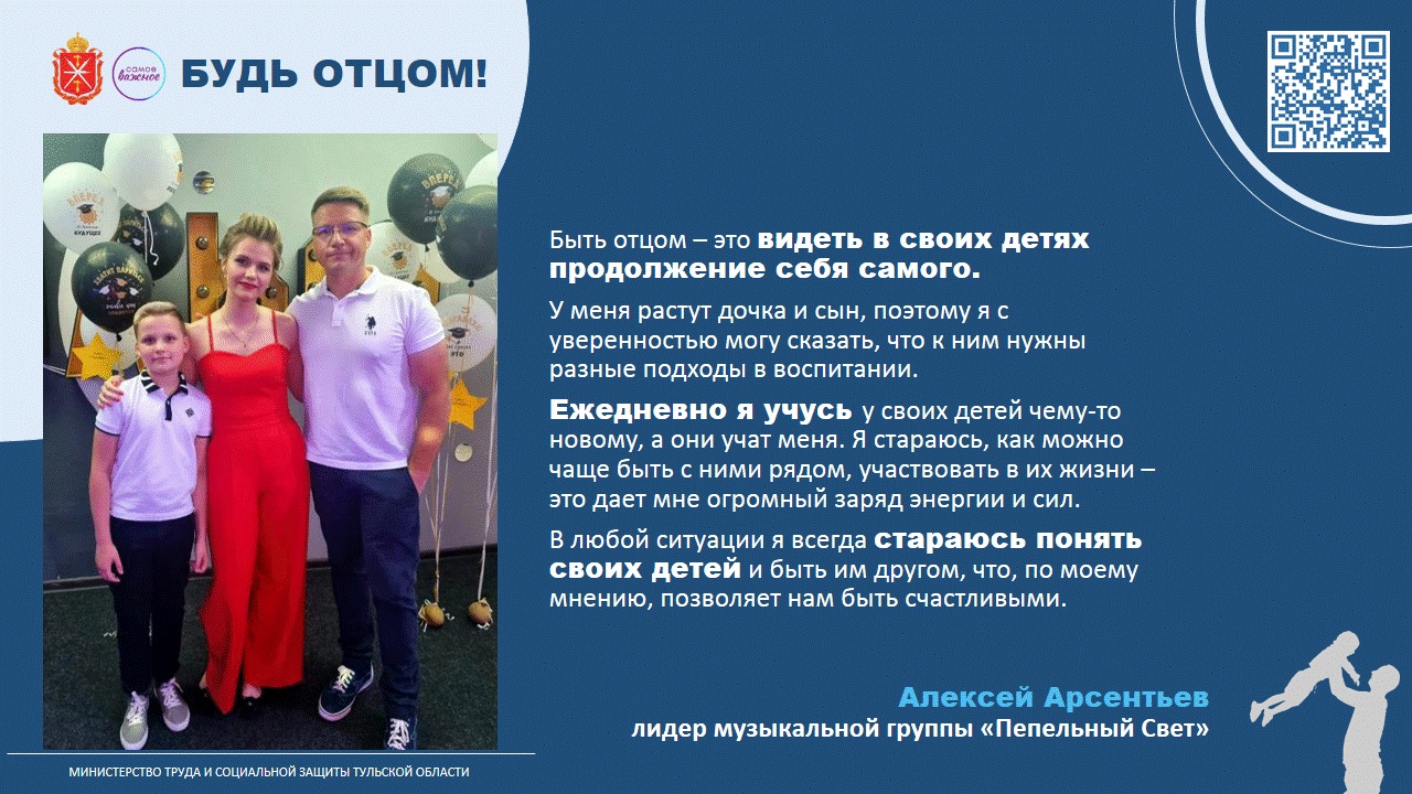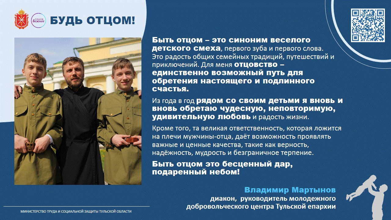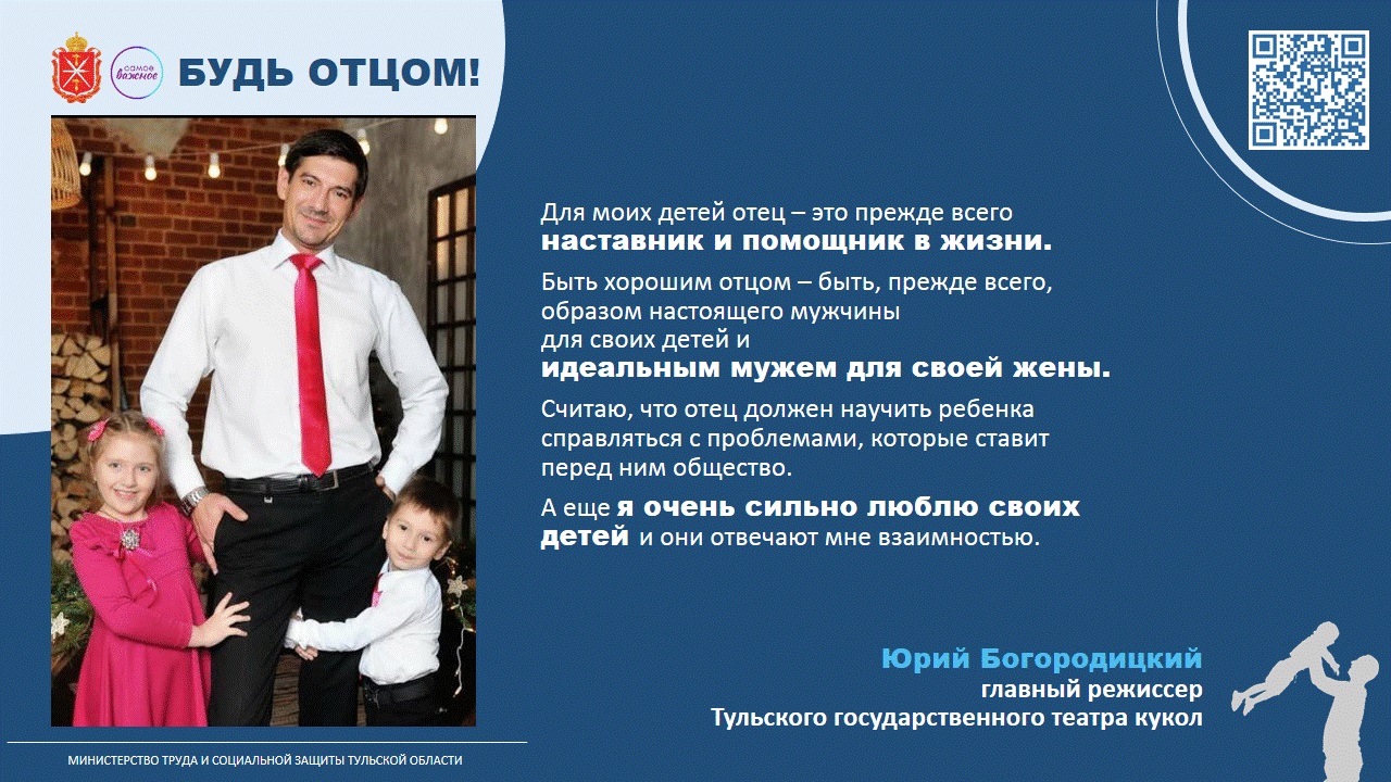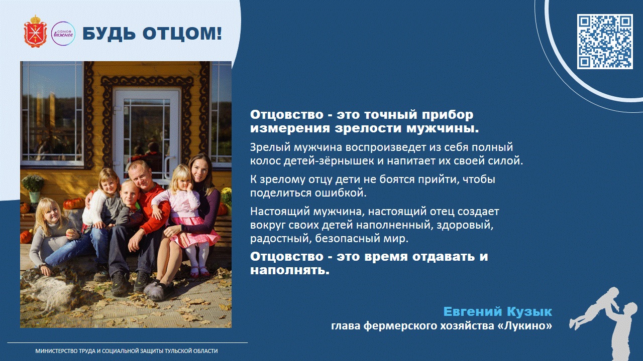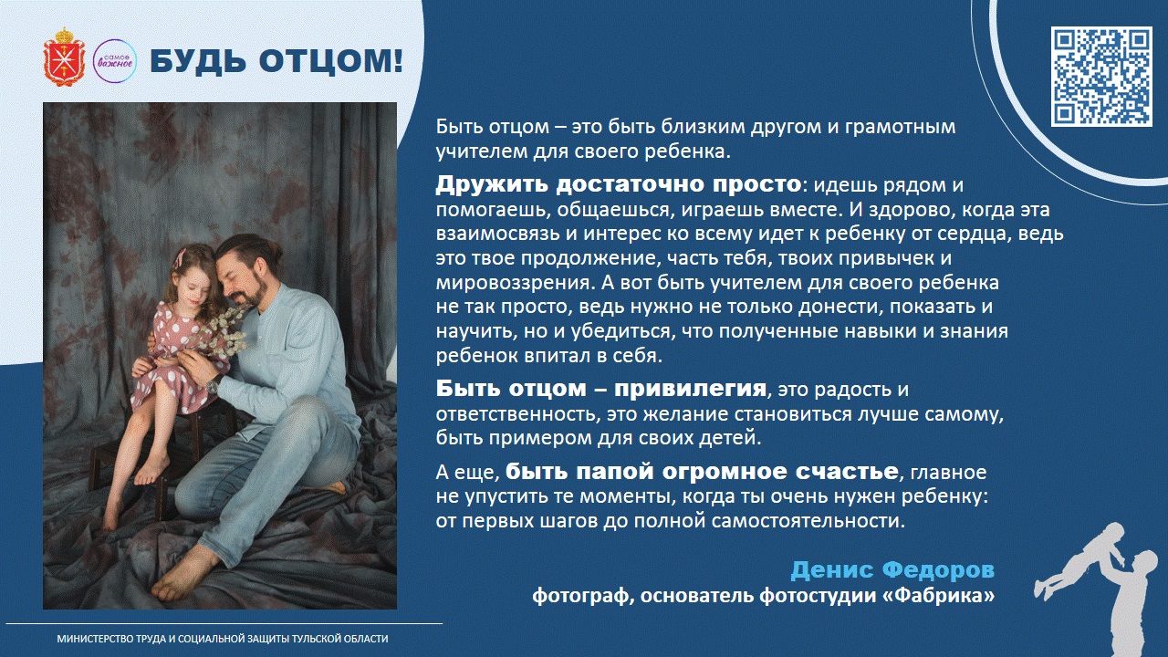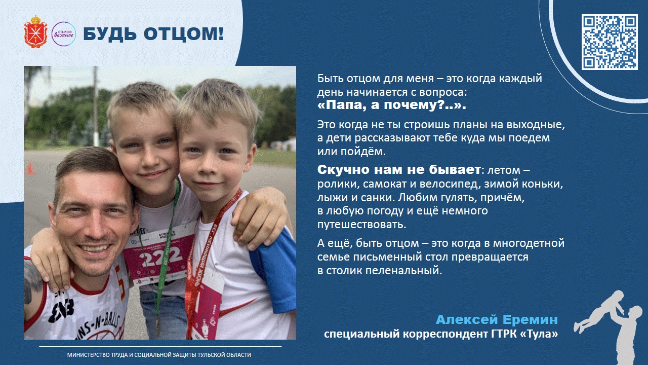 В преддверии праздника Министерство труда и социальной защиты Тульской области провело акцию «Будь отцом», в рамках которой папы разных профессий поделились своим пониманием, что значит для них отцовство: