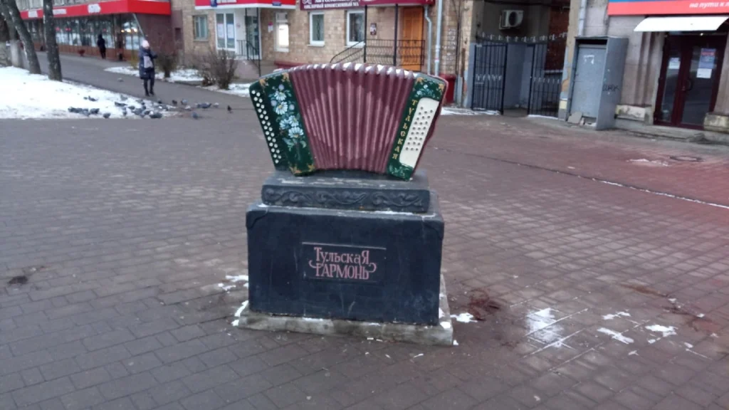 Памятный знак на проспекте Ленина в Туле лишился лавочек, которые были установлены слева и справа от гармони. Об этом рассказали местные жители, выложив фото одинокой гармони в соцсетях.