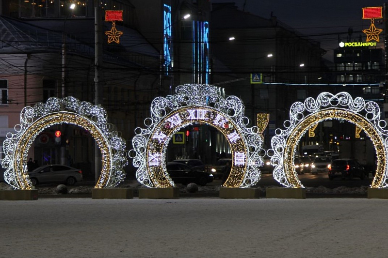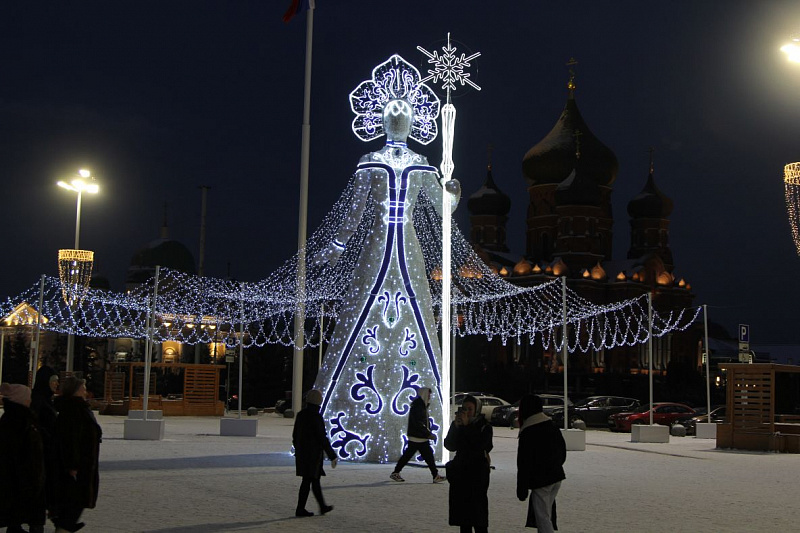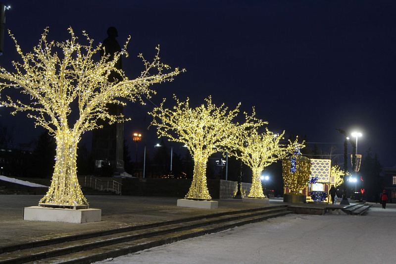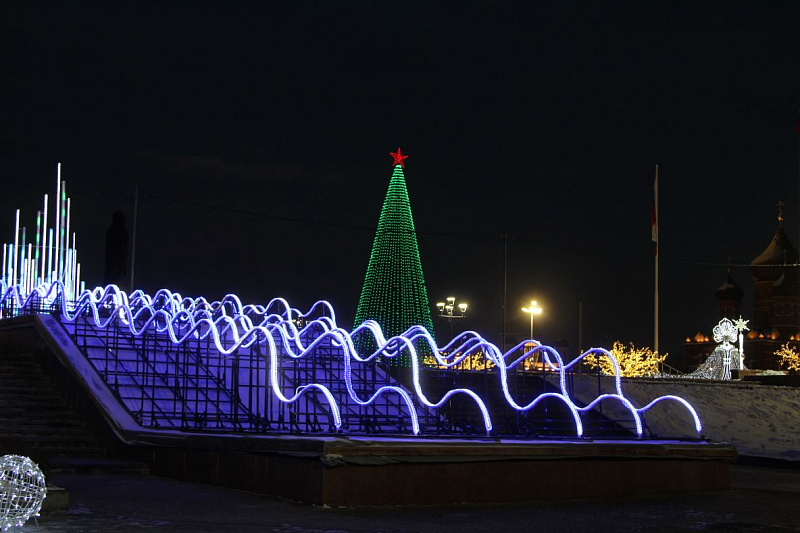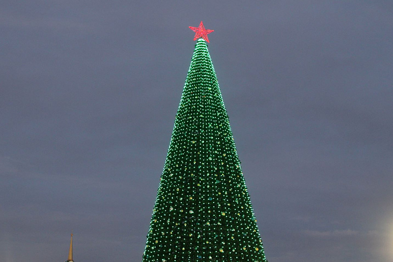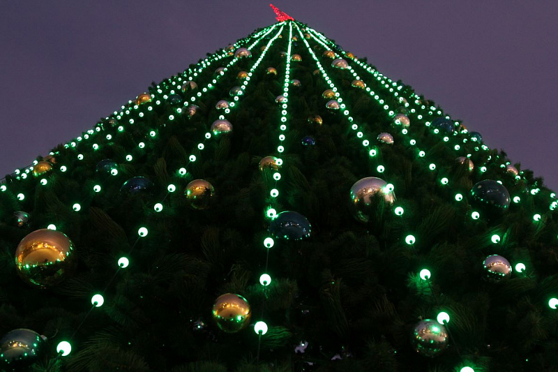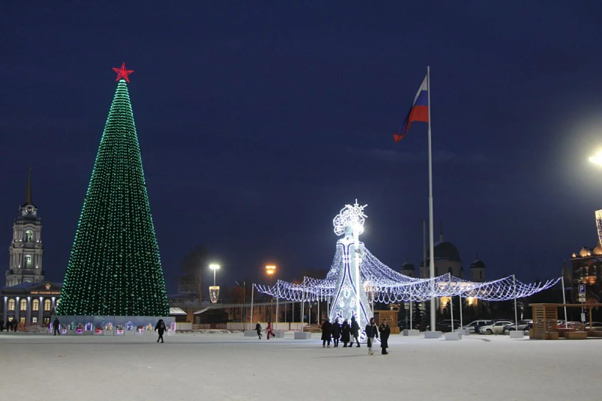 В Туле зажгли новогоднюю иллюминацию. Огнями гирлянд окрасилась главная елка на площади Ленина, инсталляции