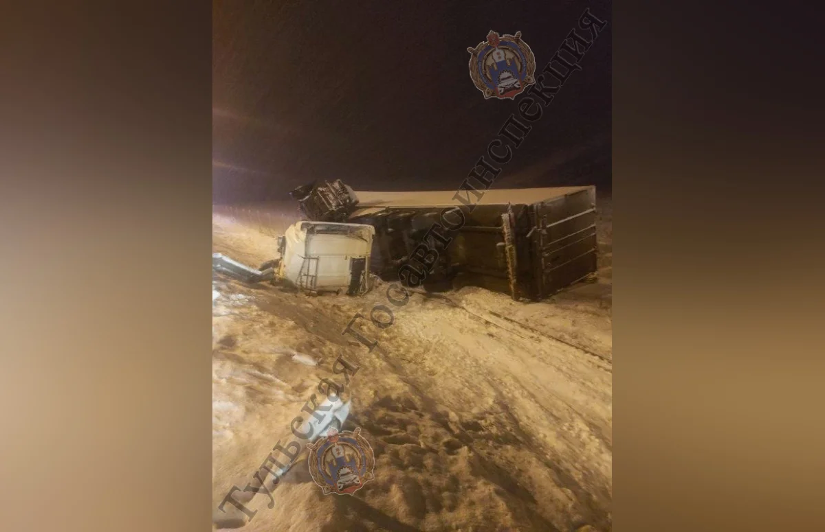 Под Ефремовом на трассе опрокинулась фура. ДТП произошло вечером 9 декабря.