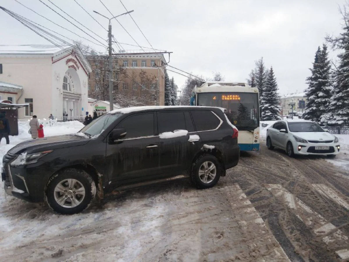 Примерно в 12 часов, на проспекте Ленина 96, черный внедорожник помешал проезду троллейбус.