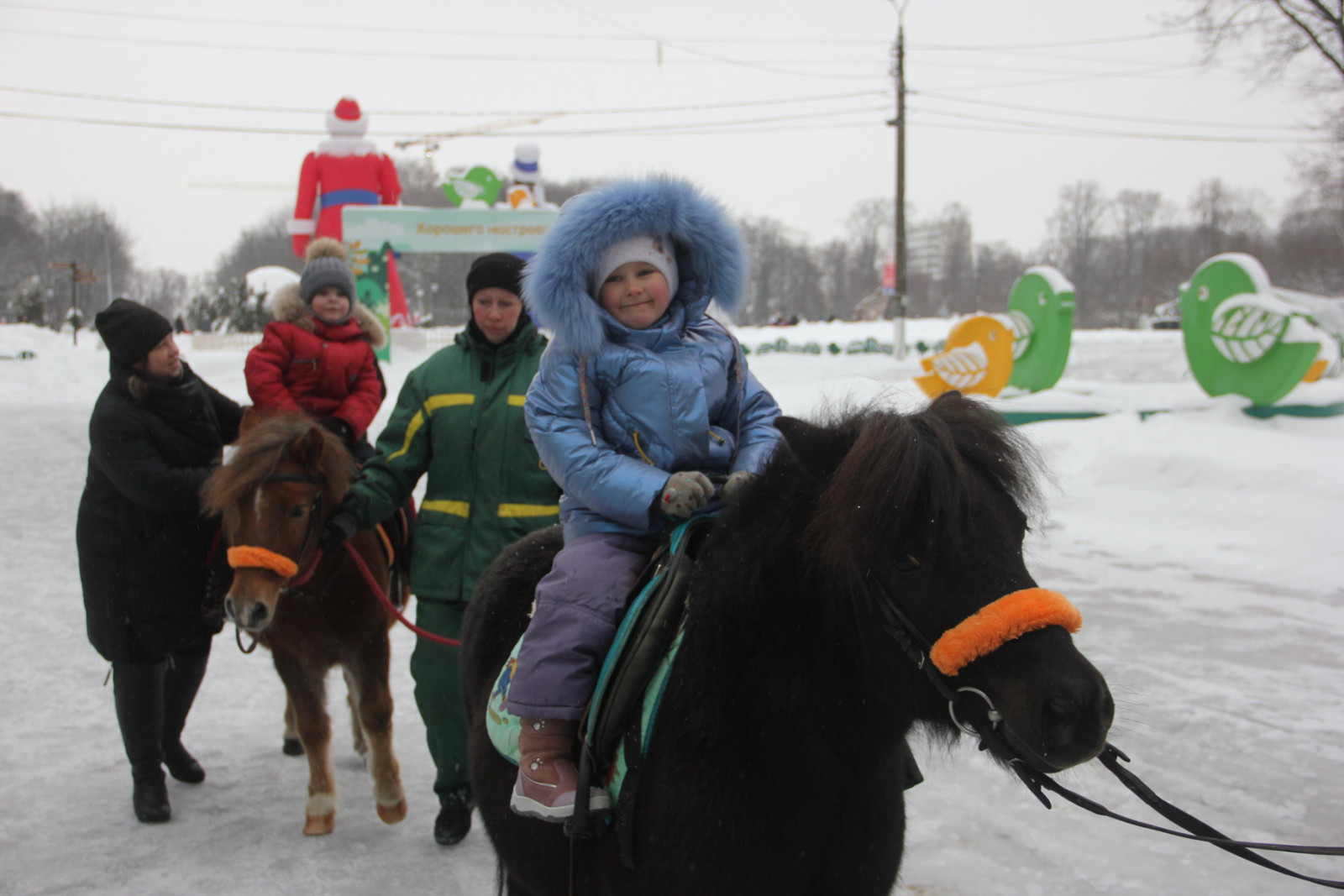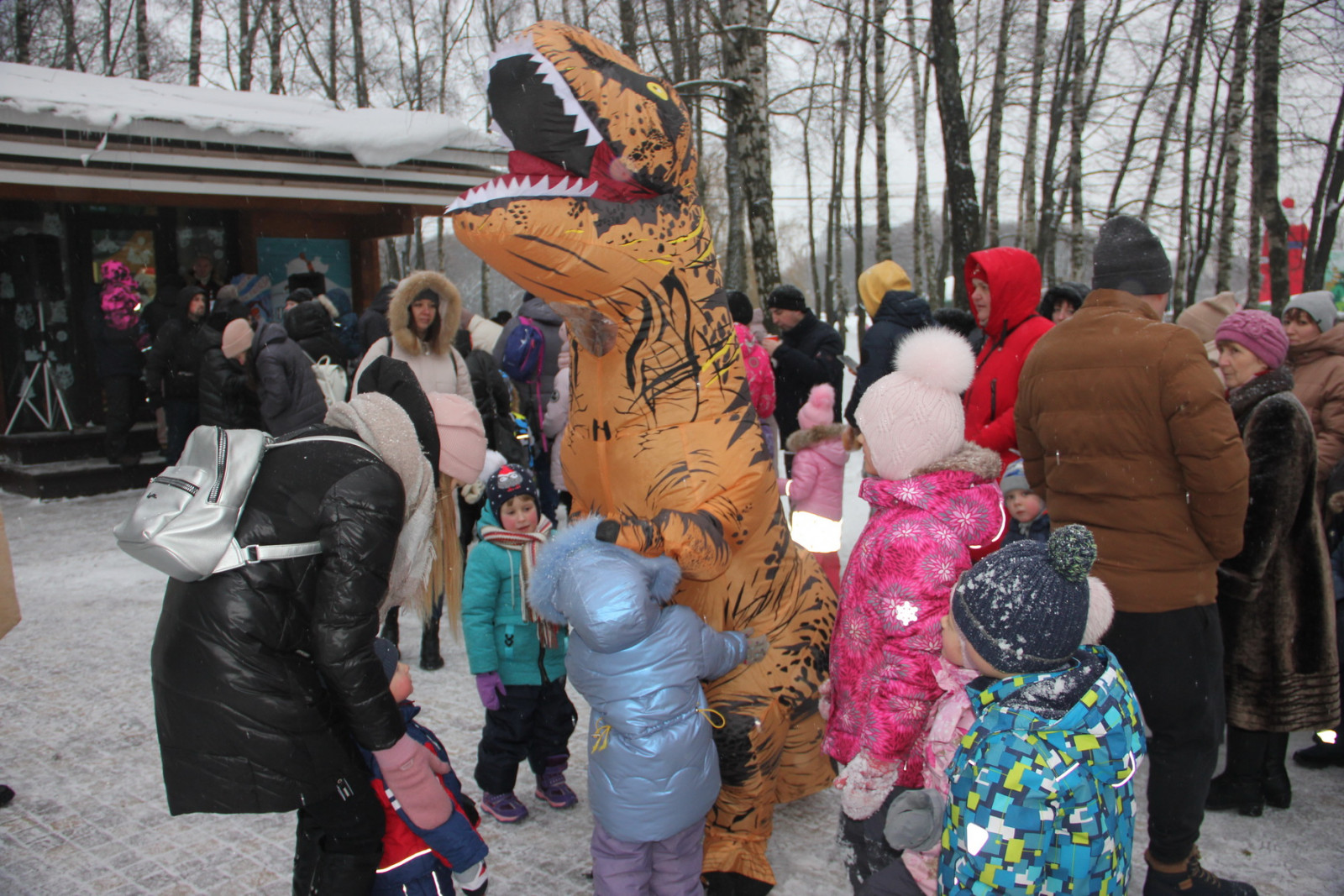 В резиденции рядом с елочкой расположилась фотозона. Там можно сфотографироваться со Снегомастерами. Кроме того, в детском городке детей бесплатно катает пони, подают сладкий чай с пирожками, работает аквагрим, а также можно сделать фотографию с тираннозавром Рексом.