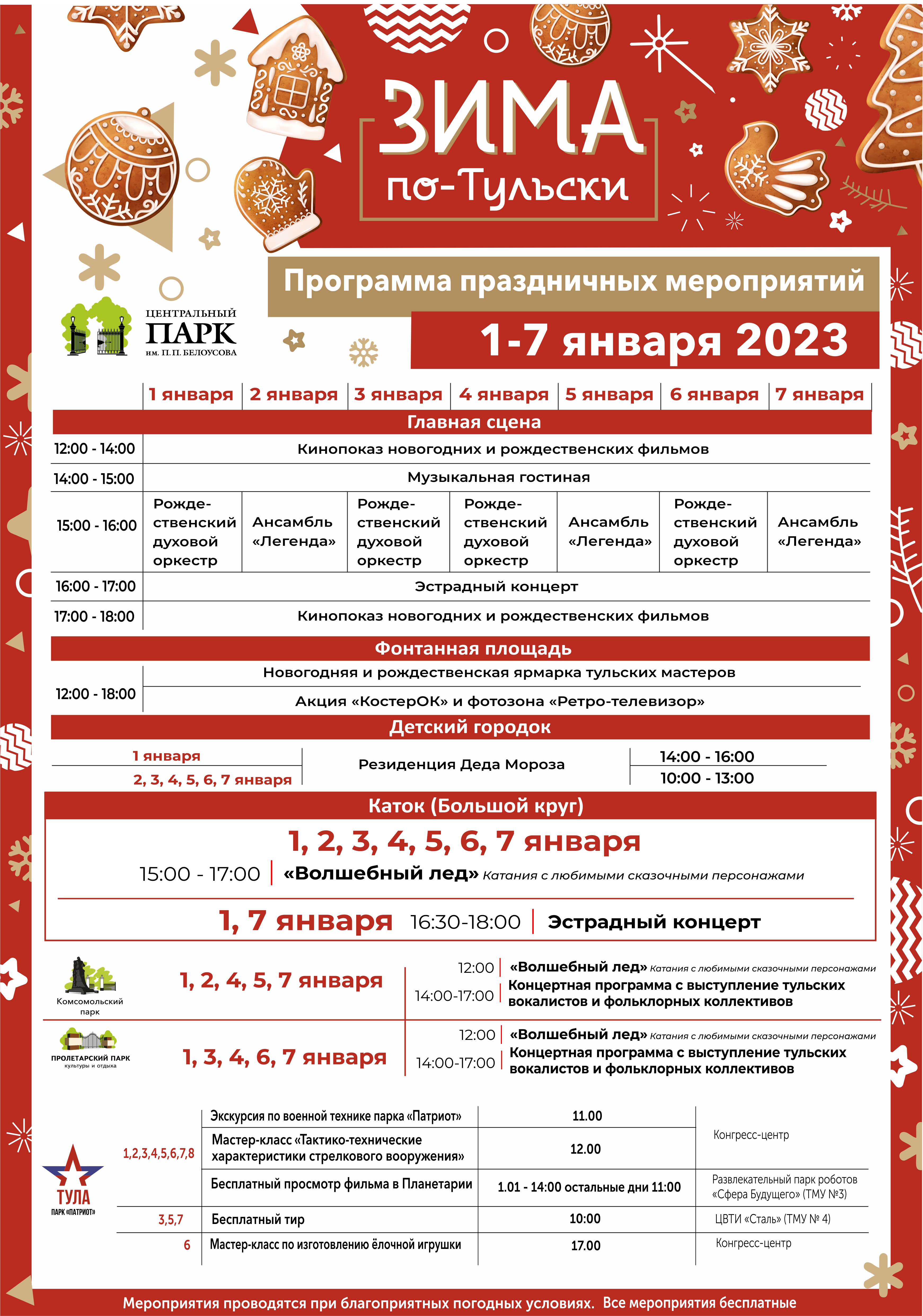 В новогодние праздники в парках Тулы жителей и гостей города ждет ряд разнообразных мероприятий. Об этом сообщает пресс-служба ГУ ТО «Тульские парки».