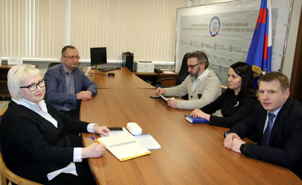 Управлении Федеральной налоговой службы по Тульской области состоялась встреча заместителей руководителя Управления Евгения Кожакова и Светланой Алексеевой с Уполномоченным по защите прав предпринимателей в Тульской области Александром Головиным, председателем Тульского регионального отделения «ОПОРА РОССИИ» Михаилом Глуховым и руководителем регионального отделения «Народного фронта» Еленой Шмелевой по вопросам внедрения Единого налогового счета (ЕНС).