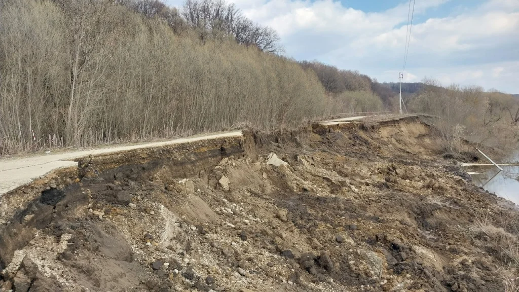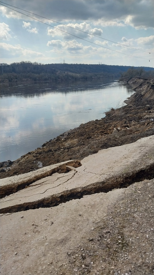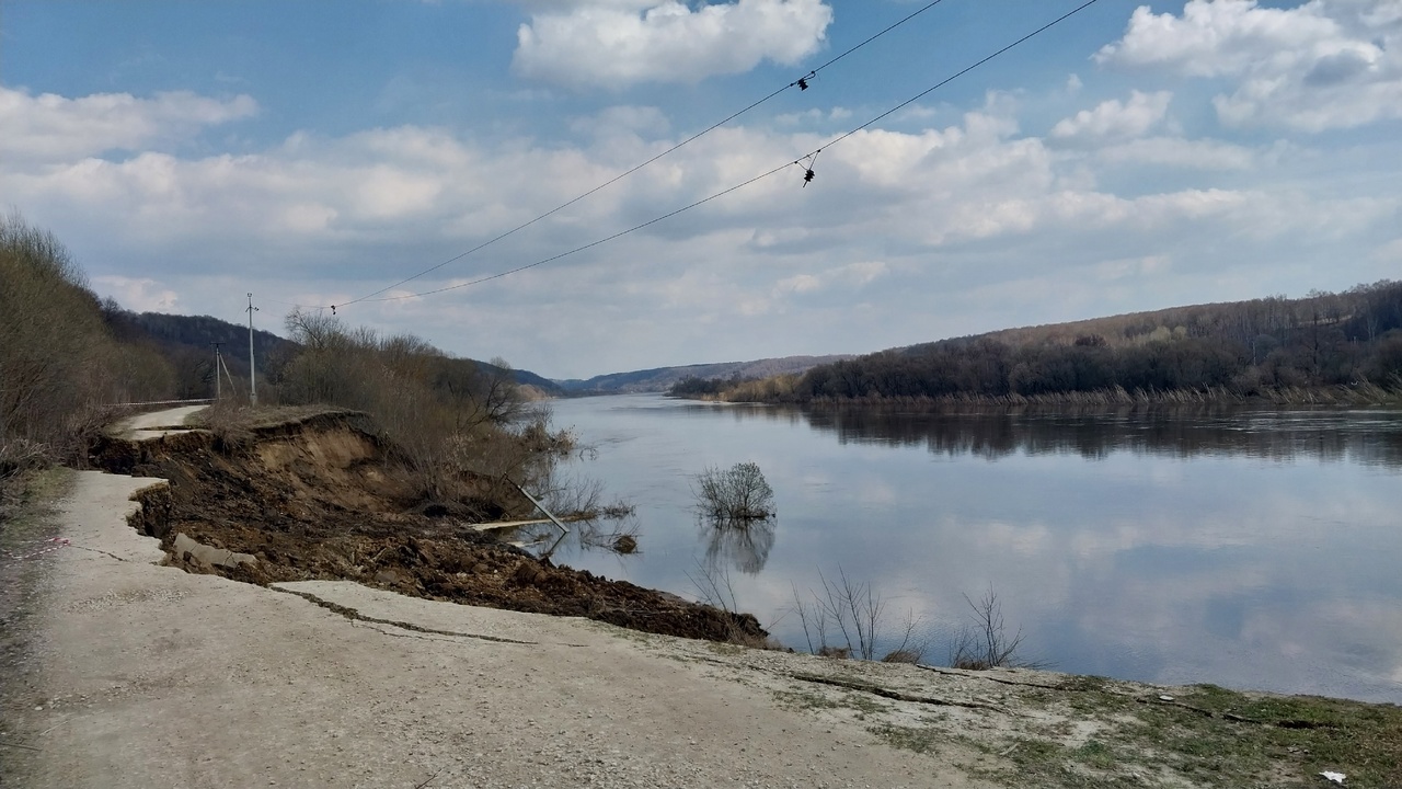 Под Тулой дожди частично размыли дорогу: она обрушилась и повлекла за собой повреждение линии электропередачи. Это случилось в районе поселка Мичурино.