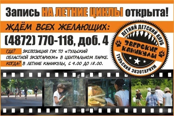 Тульский экзотариум приглашает детей в летний Досуговый клуб