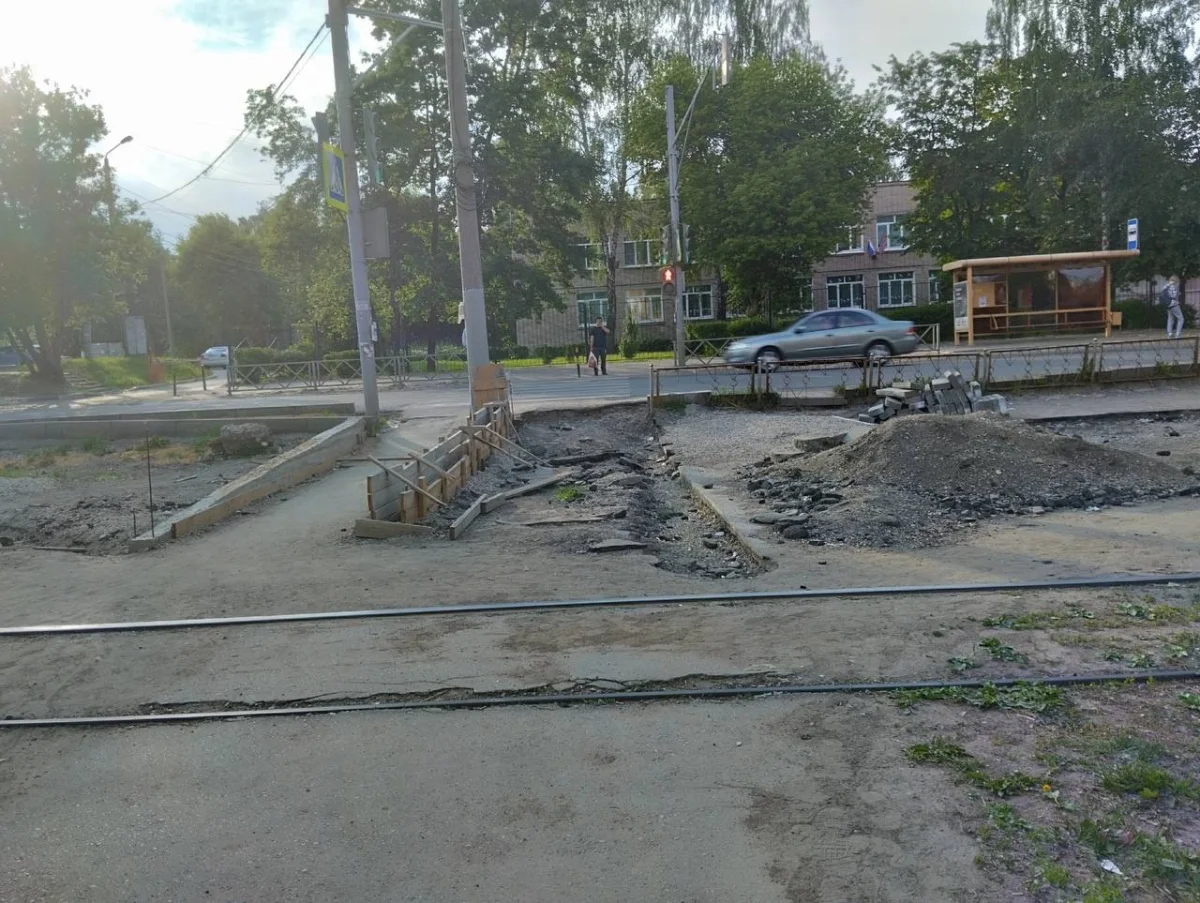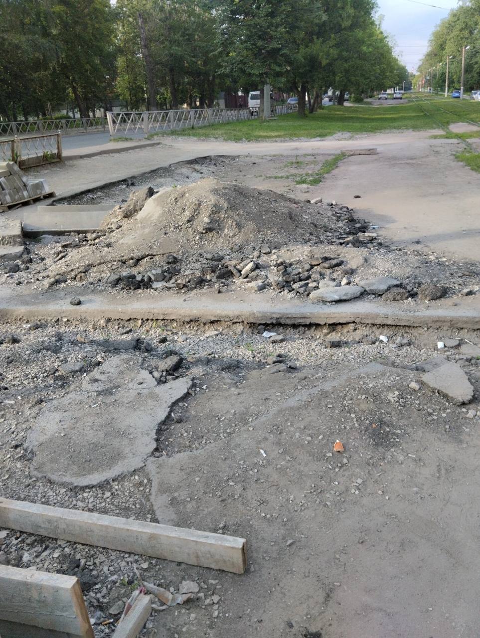 «Рядом 3 детских сада, школы, а тут торчат арматура и гвозди, бордюры, стоящие в упаковке, уже потихоньку начали растаскивать, а в дождь укрыться совершенно негде, ведь остановочного павильона нет» — пишет автор фото.