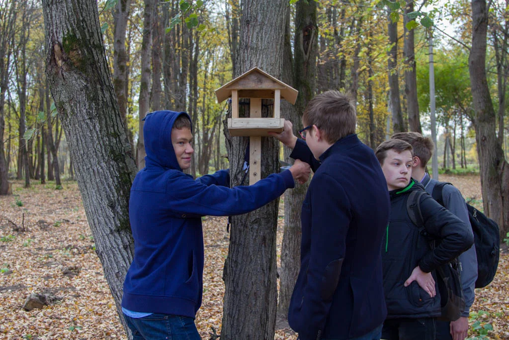 Тульские школьники повесили в Баташевском саду 40 кормушек