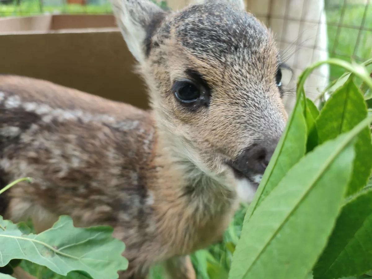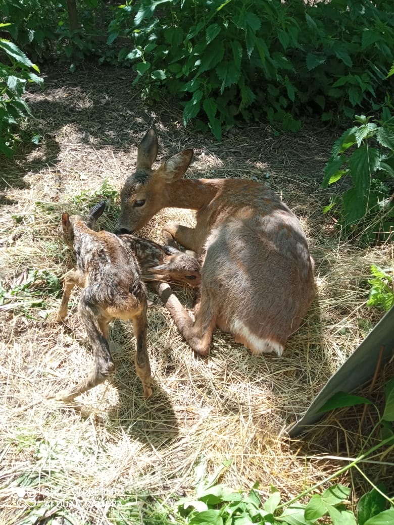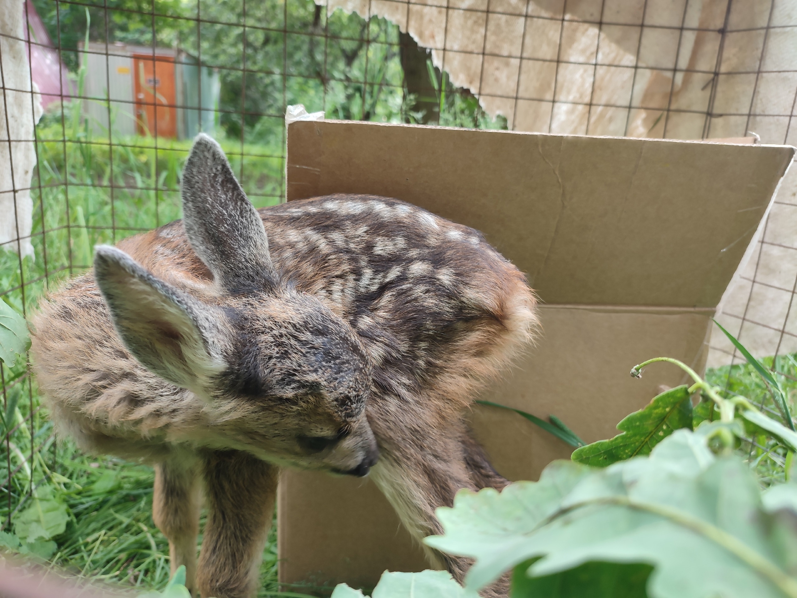 Два малыша родились у спасенной два года назад косули Бони. Она стала мамой впервые. Сейчас и мама, и детки чувствуют себя отлично, новорожденным уже почти месяц, и они уже питаются не только молоком. но и зелеными листочками и травинками. Назвали их Шурочка и Соня.