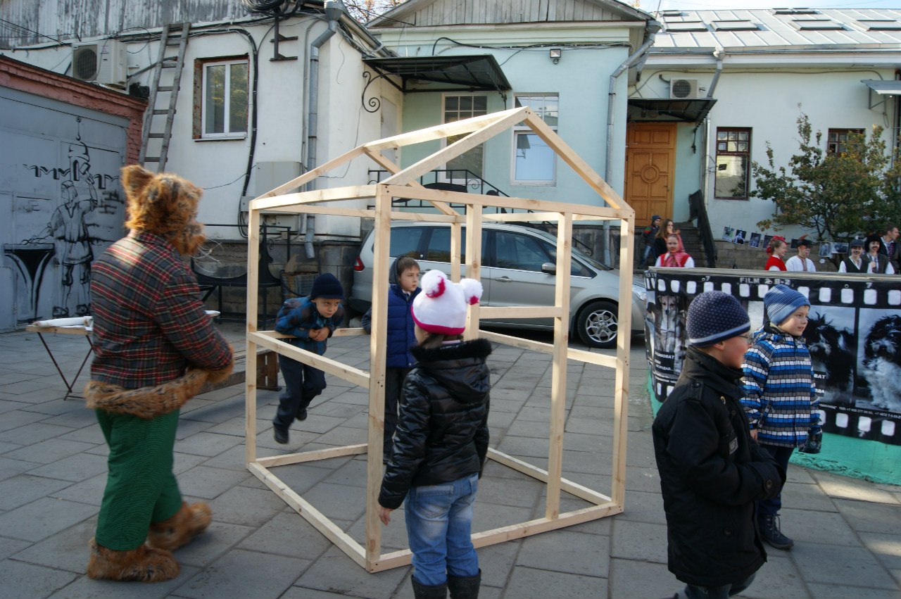 На празднике он активно участвовал в строительстве конуры, сражу же побежал туда, как только началась стройка, познакомился с молодым псом-артистом Бинго, еще не раз был накормлен и наглажен детьми, попытался поучаствовать в игровом спектакле театра