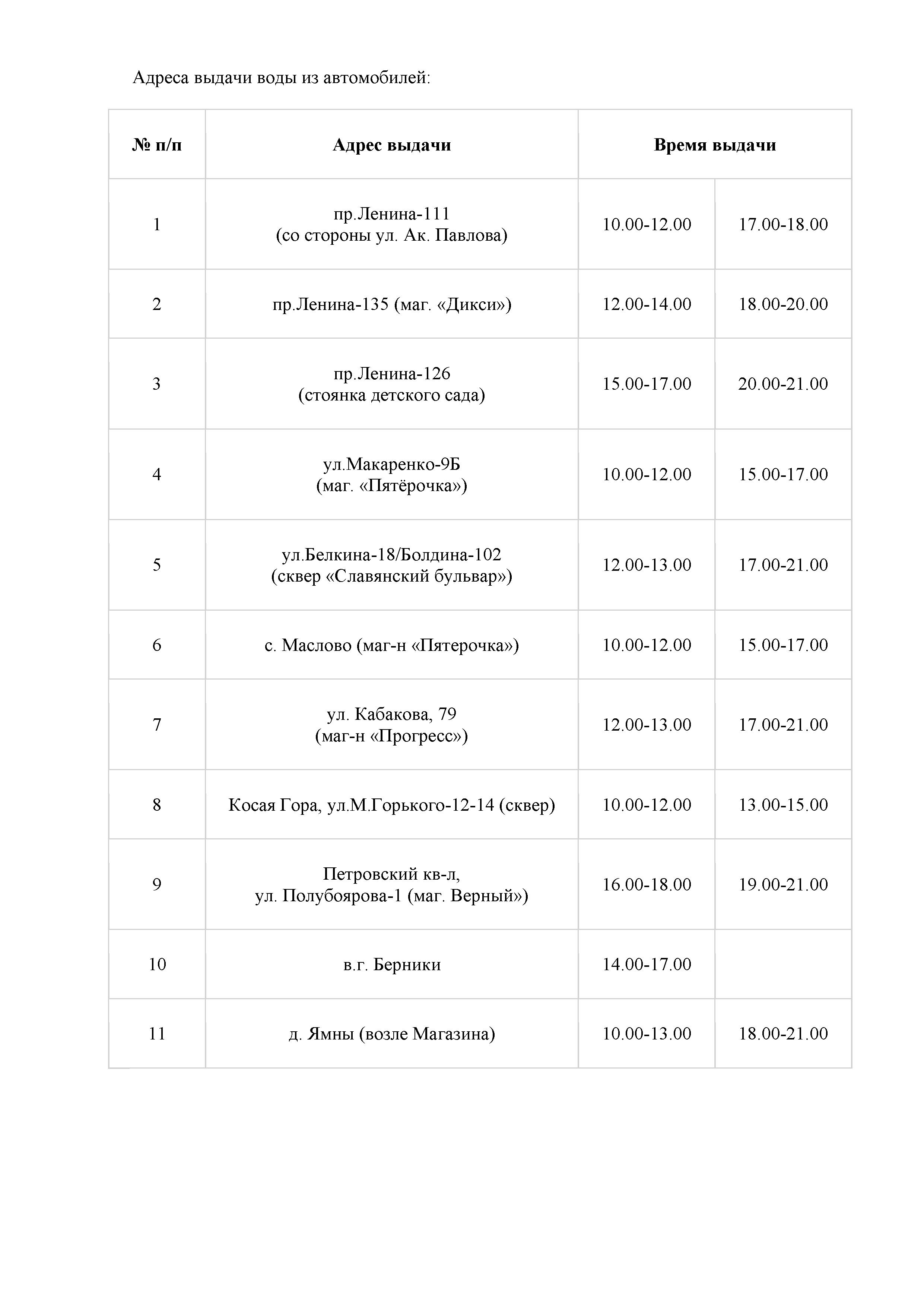 В связи с этим в городе будут раздавать питьевую и техническую воду по адресам: