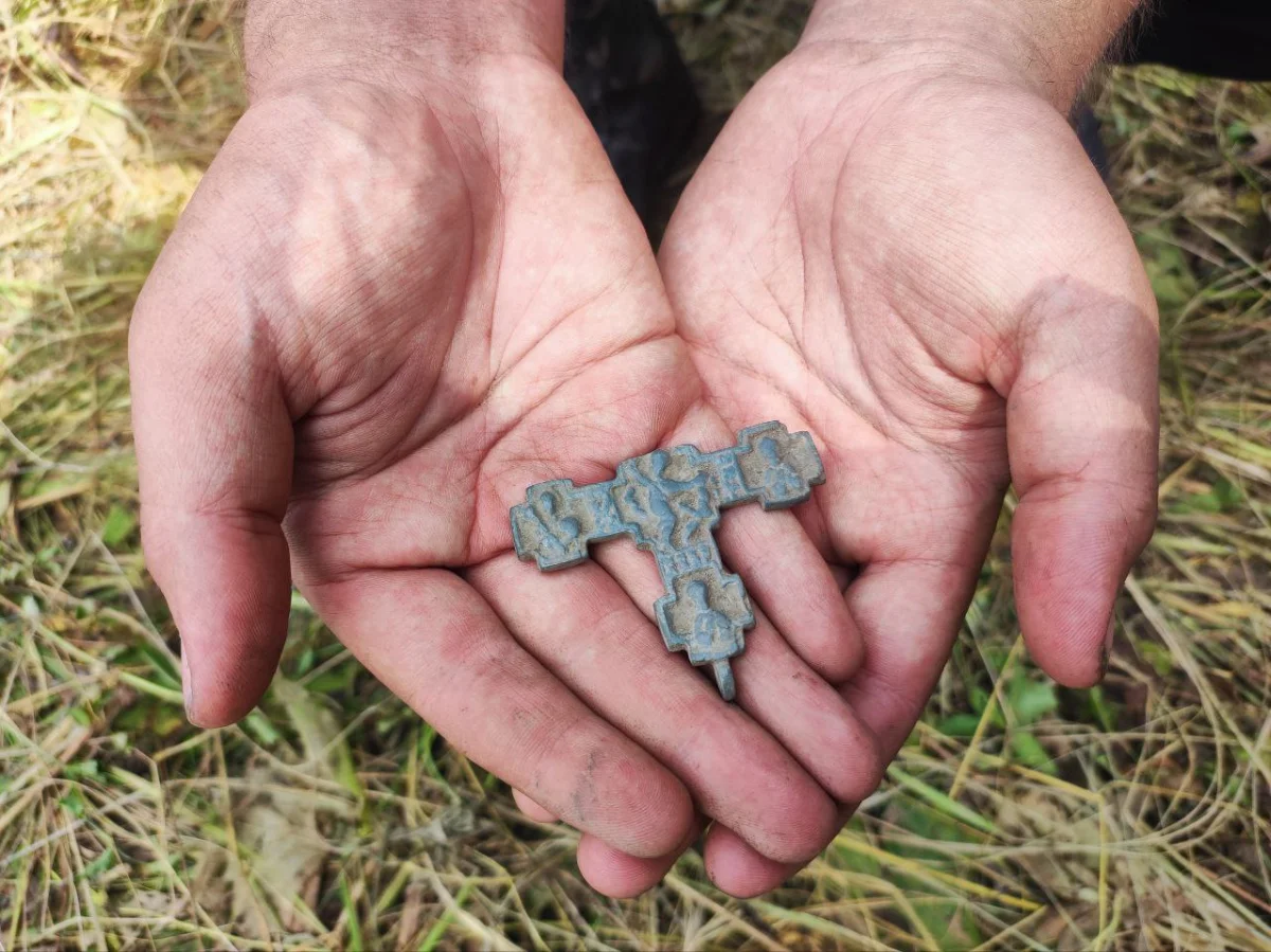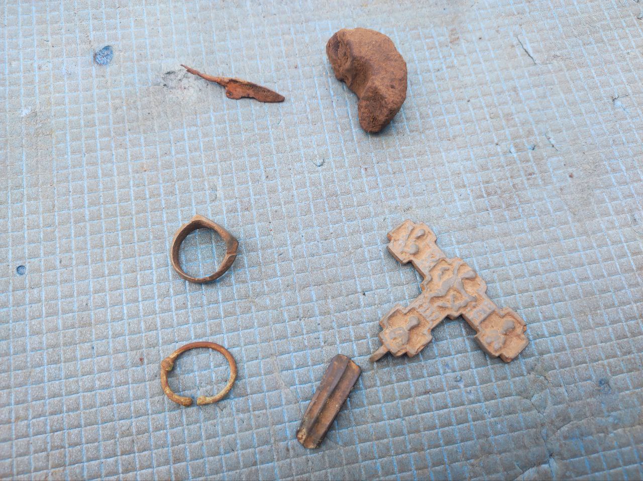 Другие артефакты, найденные на месте многослойного поселения, датируются более поздним временем. Среди них перстень XIV-XV века - одна из интересных находок специалистов Тульской археологической экспедиции. Древнее украшение было обнаружено на склоне, на той же площадке, что и клад женских украшений. Довольно редкая вещь – энколпион из бронзы с изображением Никиты Бесогона – был найден на соседнем мысу, на месте поселения, которое также датируется XIV-XV веками.