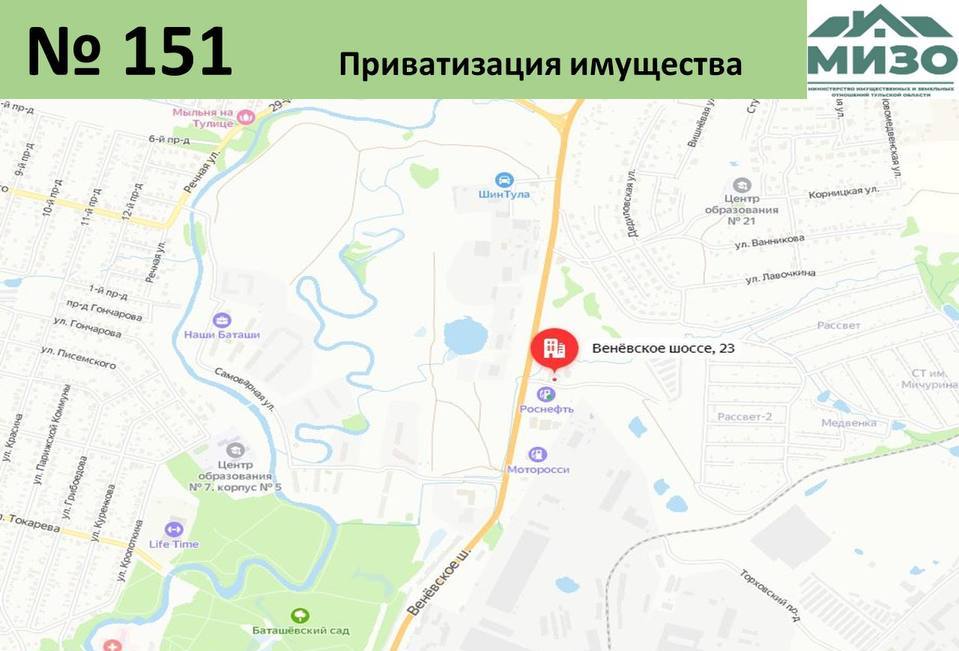 Торги состоятся 21 августа 2023 года на электронной площадке. На продажу выставлен бывший профилакторий на Веневском шоссе, 23. Здание имеет 3 этажа, его площадь 3 270,5 кв. м.