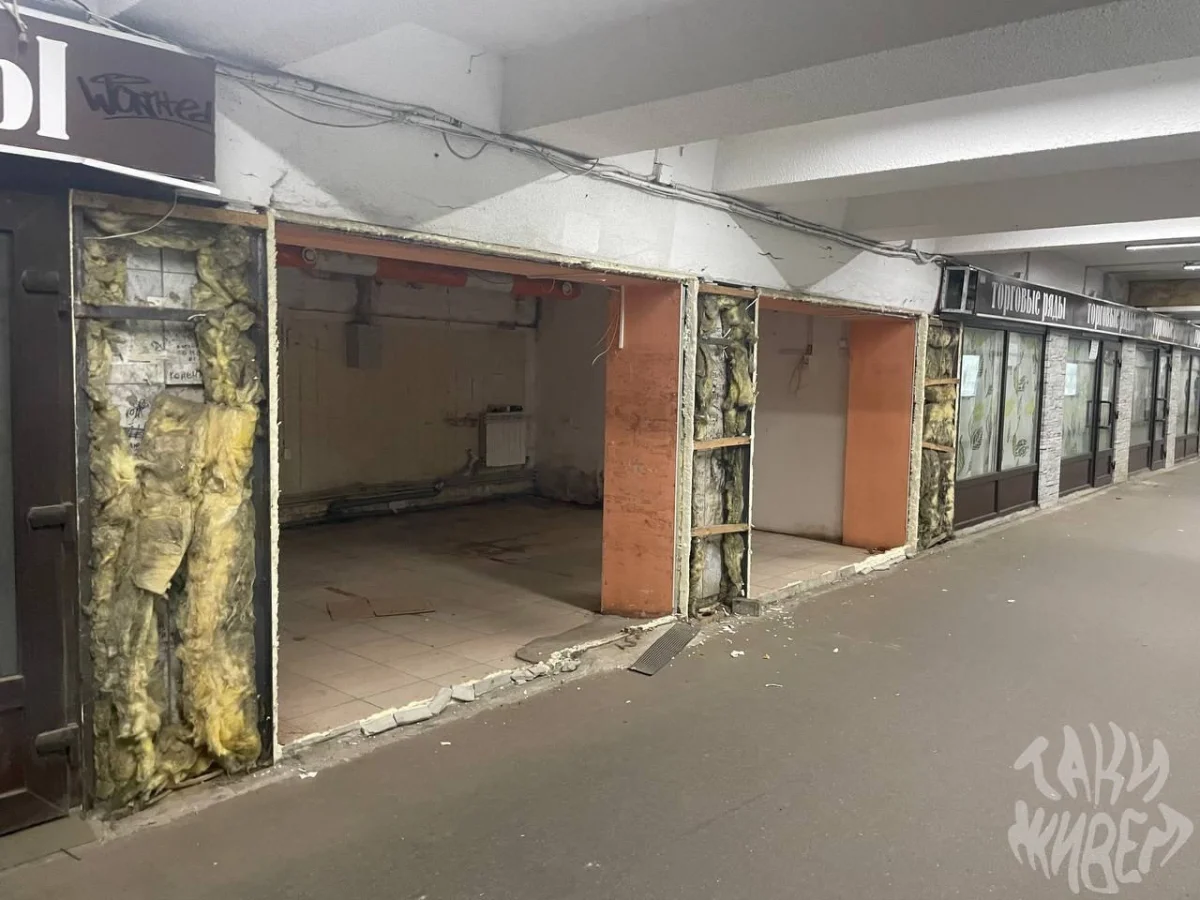 Внутри большинства магазинов в переходе остался лишь бытовой мусор. На некоторых дверях висят объявления, что торговая точка переехала в ТРЦ "Гостиный двор".
