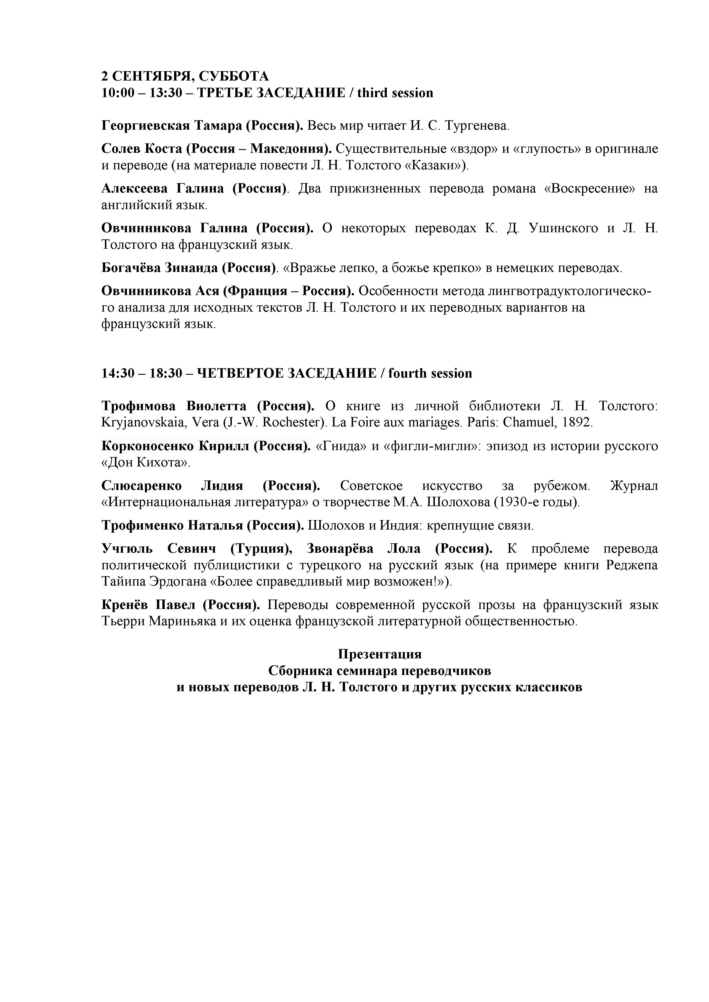 На семинаре будет обсуждение трудностей и особенностей перевода произведений не только Толстого, но и Достоевского, Ушинского, Булгакова на хинди, тамильский, английский, французский, немецкий, татарский, старотатарский, арабский языки, а также другие спорные и интересные вопросы переводов литературных произведений.