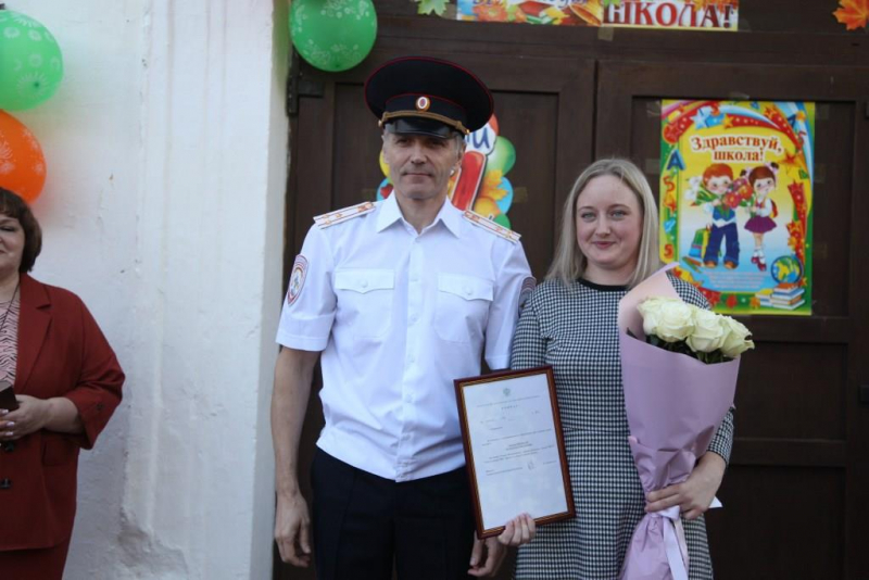 По поручению Министра внутренних дел Российской Федерации Владимира Колокольцева на торжественной линейке, посвященной Дню знаний, в Скуратовской средней общеобразовательной школе Чернского района Тульской области начальник УМВД России по Тульской области полковник полиции Андрей Даценко вручил ведомственную награду Татьяне Шулениной.