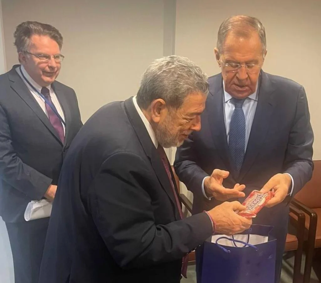 Официальный представитель МИД РФ Мария Захарова сообщила, что министр иностранных дел России Сергей Лавров подарил главе МИД Сент-Винсента и Гренадин Ральфу Гонсалвесу тульские пряники.