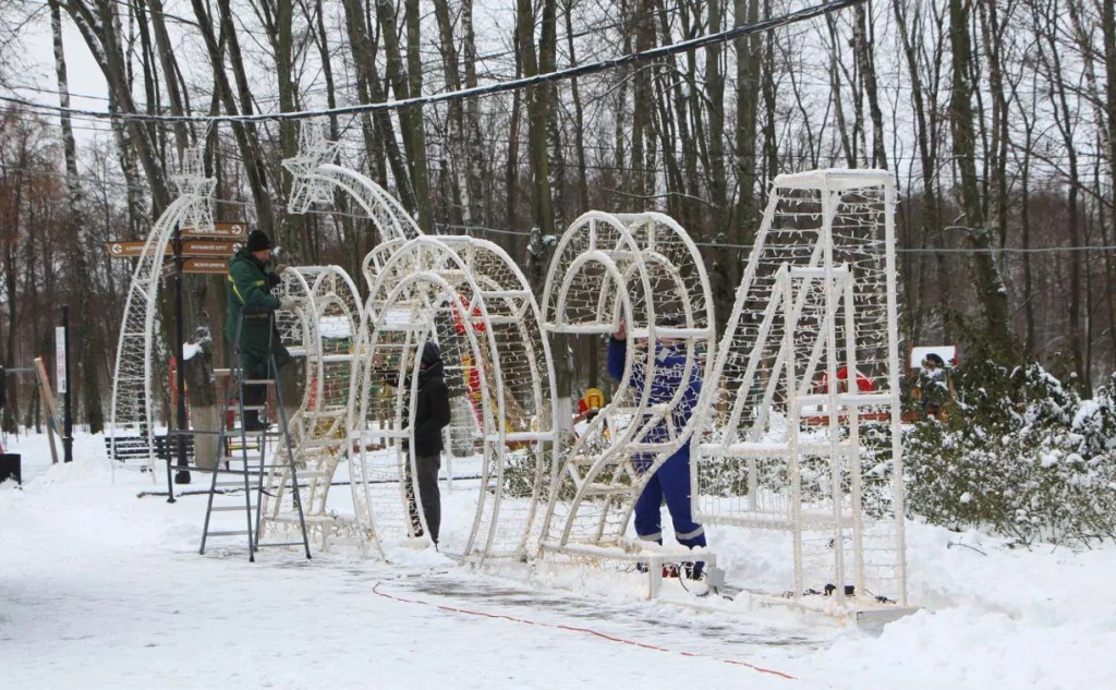 Сейчас в главной рекреации города завершаются работы по установке праздничной иллюминации. По традиции, здесь появятся праздничная арка, консоли со звездами. А вот аэрофигуры Деда Мороза и Снегурочки